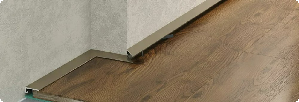 Микроплинтус — это узкий алюминиевый профиль, который устанавливается на стыке пола и стены, маскируя технологический зазор и создавая эффект «чистого» пространства. В отличие от классических плинтусов, он практически незаметен и не выступает за плоскость пола, что позволяет вплотную придвигать мебель к стене.