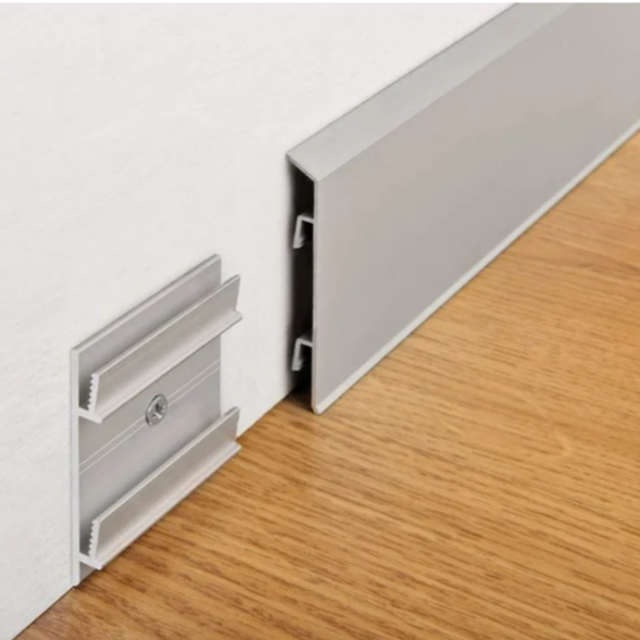 Монтаж алюминиевого плинтуса на клипсы позволяет быстро и качественно выполнить отделку, сохраняя возможность лёгкого демонтажа и повторного использования материалов.