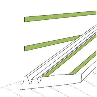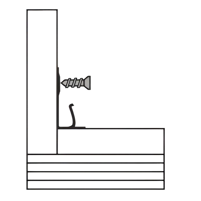 Установите монтажную клипсу при помощи саморезов плотно к полу. Рекомендуемое растояние между клипс 45-50 см.
