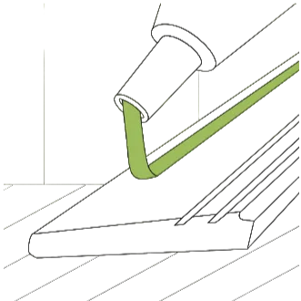 Нанесите клей полосами на плинтус.