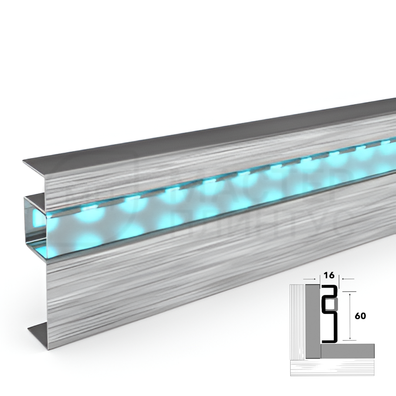 - Простота ухода: Плинтус легко очищается с помощью обычных моющих средств. Нержавеющая сталь не требует специального ухода, сохраняет свой первоначальный вид на протяжении многих лет.