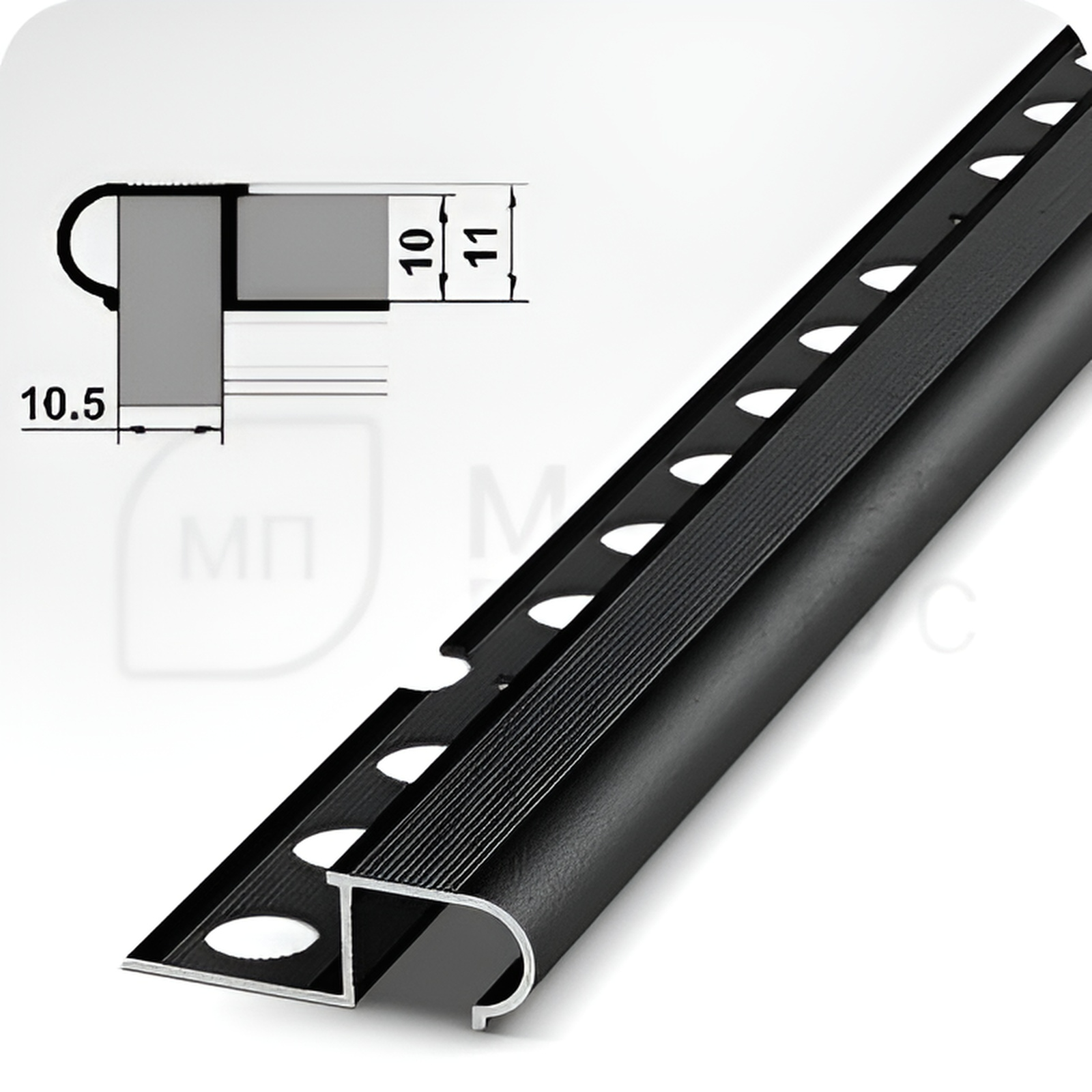 Профиль окантовочный для ступеней из плитки «Лука» ПУ 08.2700.15 черный, предназначен для оформления наружных углов плитки.