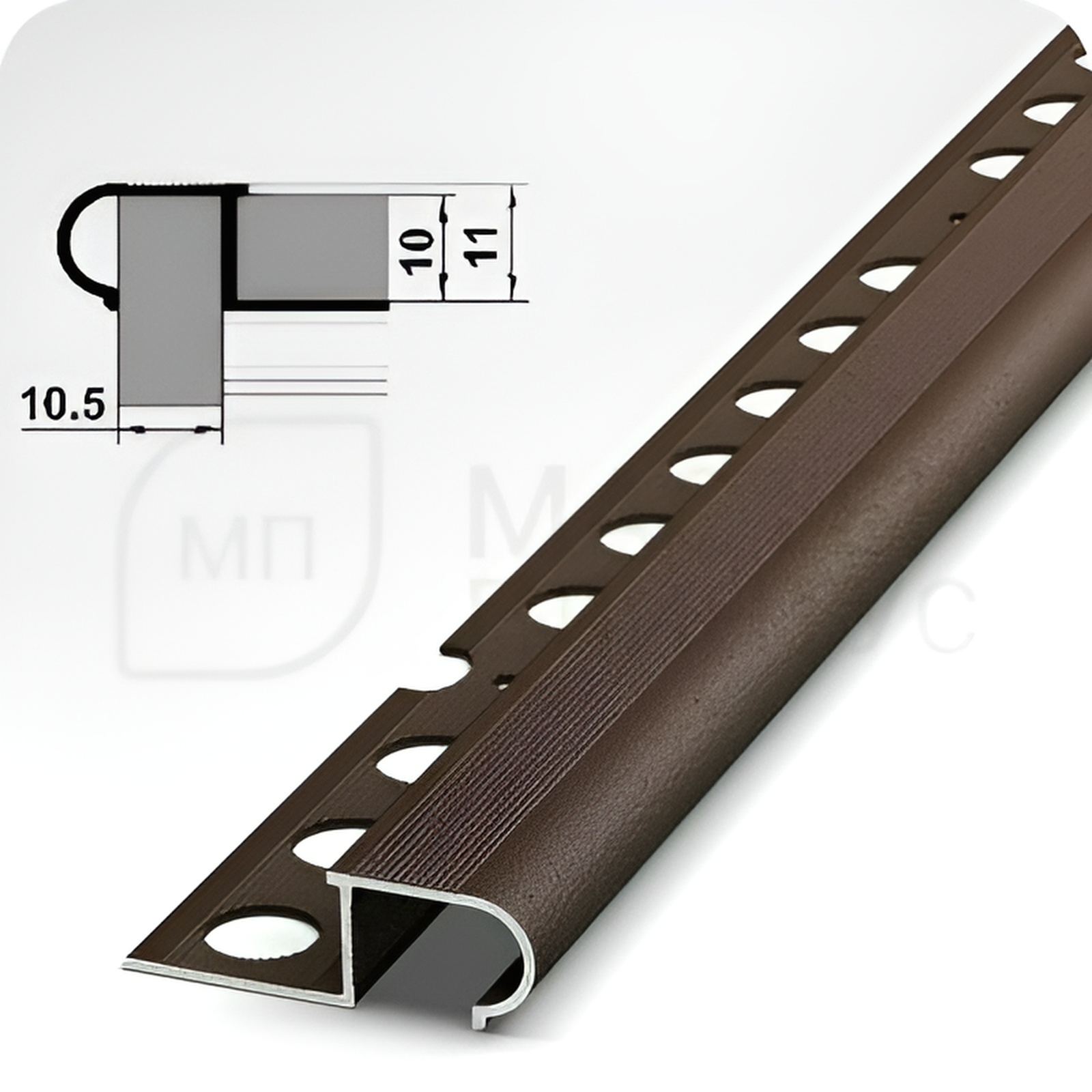 Профиль окантовочный для ступеней из плитки «Лука» ПУ 08.2700.03 шоколад, предназначен для оформления наружных углов плитки.
