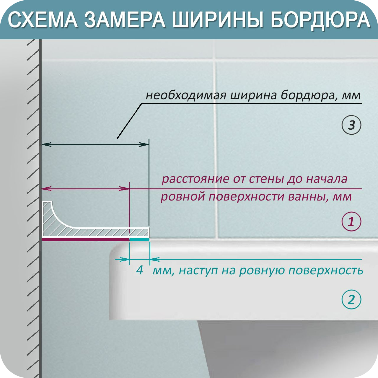 - Обычно, если вам нужно перекрыть зазоры между плиткой и ванной по трем сторонам, вам потребуется: одна правая, одна левая и одна штука 180 см.