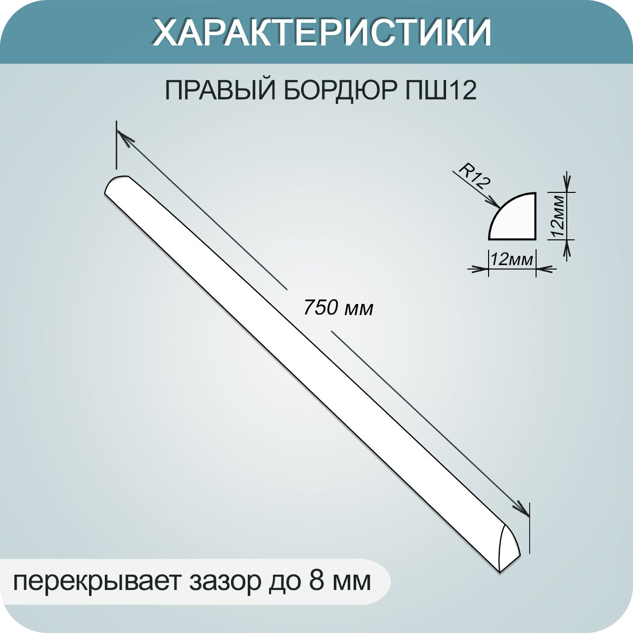 Акриловый плинтус бордюр для ванной BNV ПШ12 12х12х750мм Бежевый правый