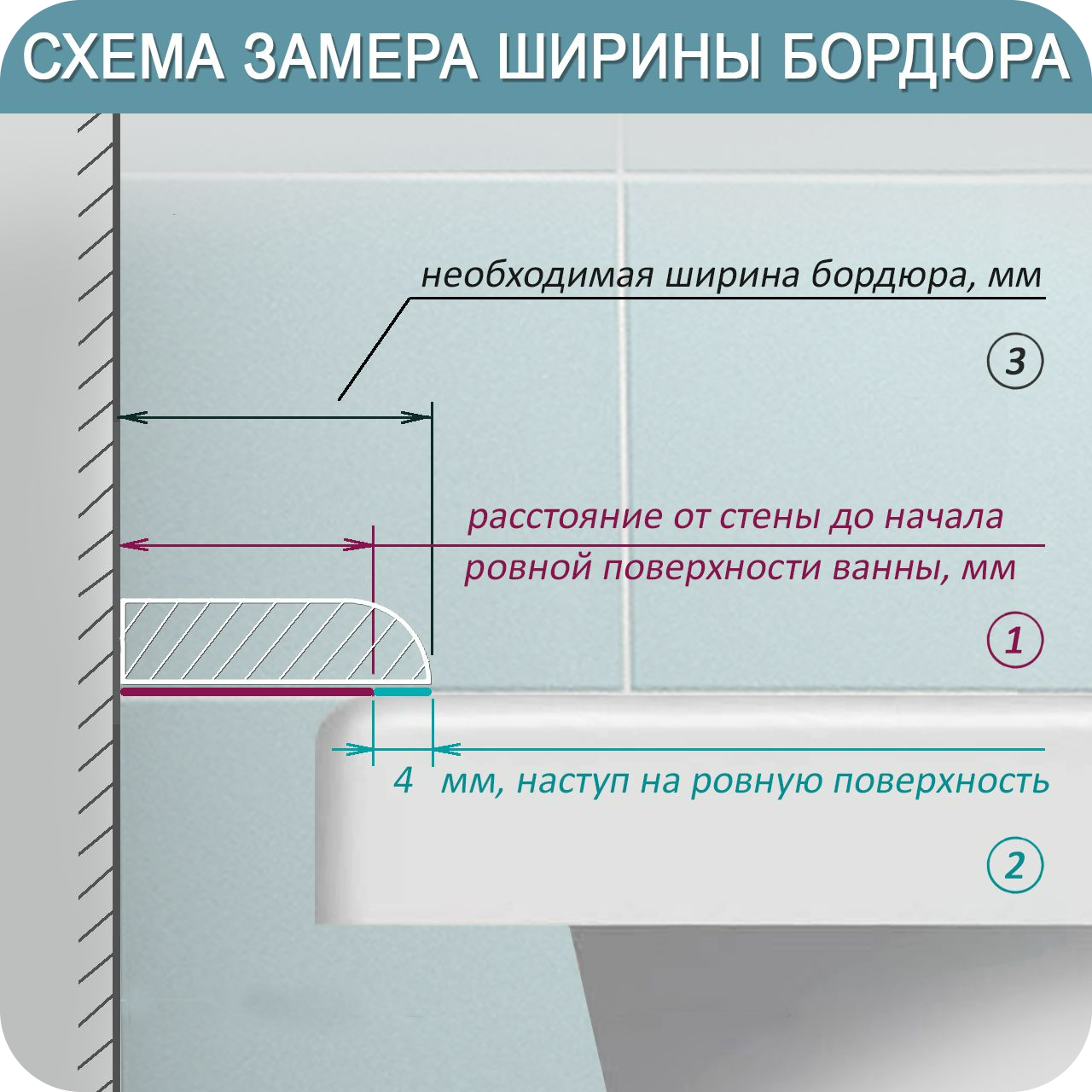 - Обычно, если вам нужно перекрыть зазоры между плиткой и ванной по трем сторонам, вам потребуется: одна правая, одна левая и одна штука 180 см.