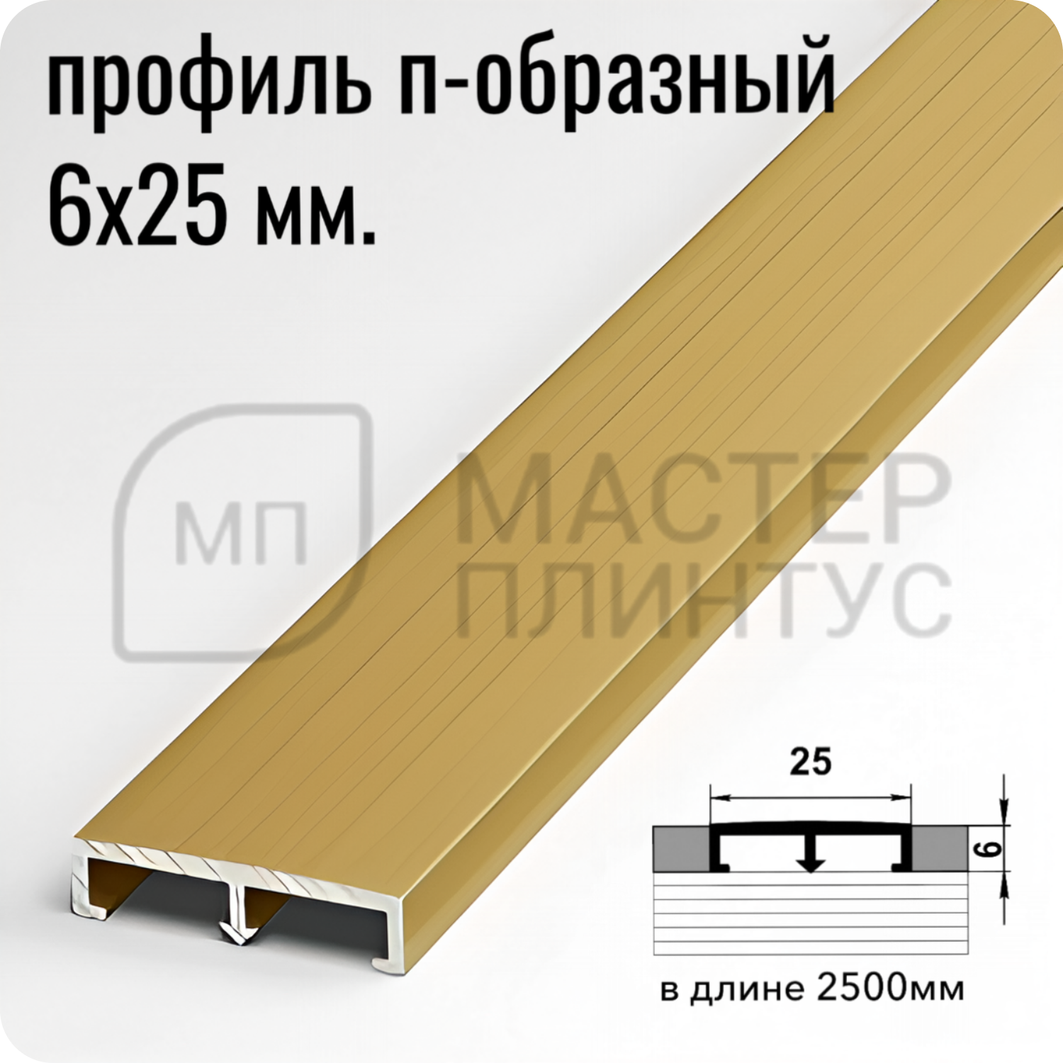 Алюминиевый П-образный профиль бордюр-вставка для плитки и керамогранита в золотом цвете.