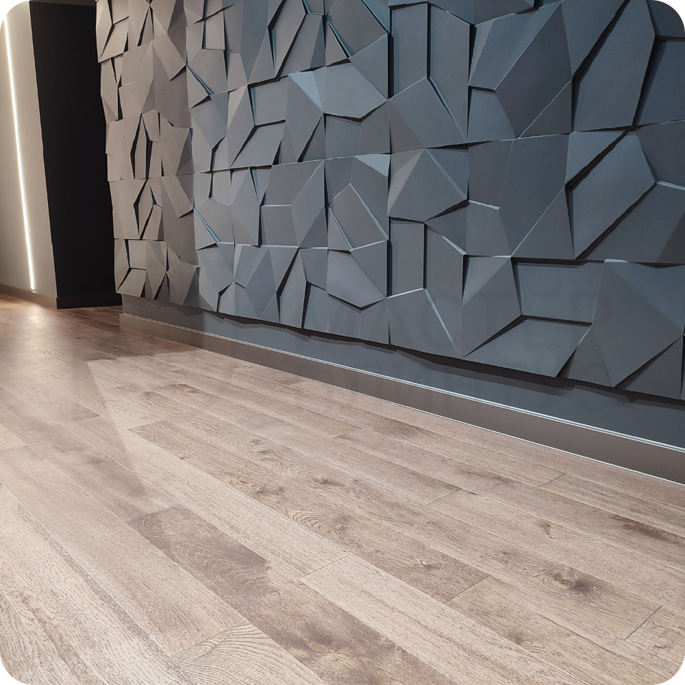 - Устойчивость к влаге: благодаря специальному покрытию из полипропилена, плинтус Döllken не боится влаги, что делает его идеальным для использования в влажных помещениях