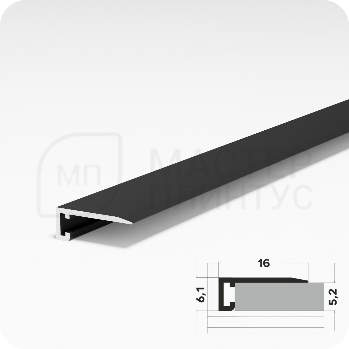 Прямой антиплинтус Лука в черном цвете — современное решение для элегантной отделки помещений. Алюминиевый профиль с матовой поверхностью идеально подходит для любых напольных покрытий. Изделие сочетает в себе эстетику и функциональность, обеспечивая безупречный внешний вид помещения.