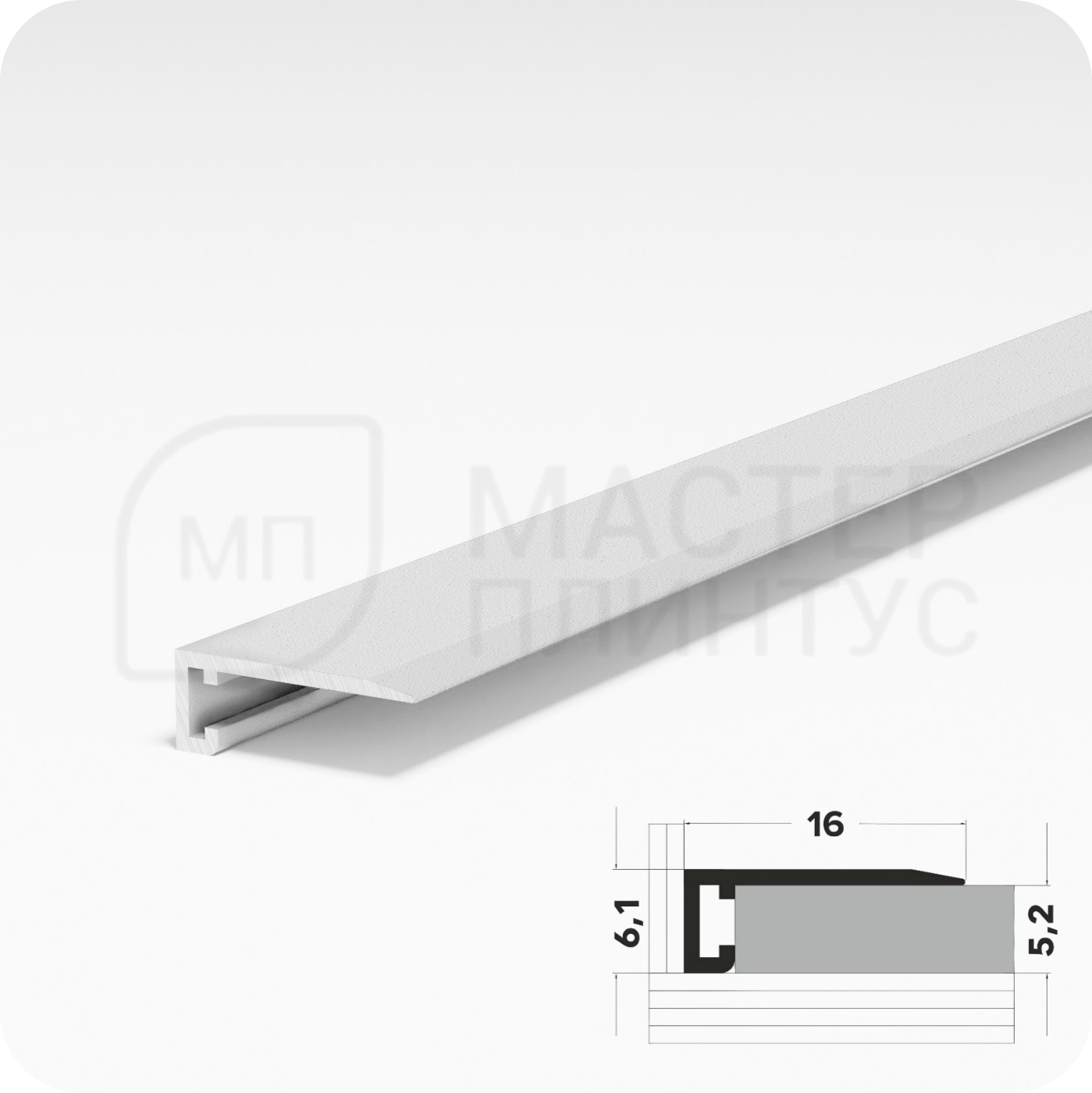 Прямой антиплинтус Лука в белом цвете — современное решение для элегантной отделки помещений. Алюминиевый профиль с матовой поверхностью идеально подходит для любых напольных покрытий. Изделие сочетает в себе эстетику и функциональность, обеспечивая безупречный внешний вид помещения.