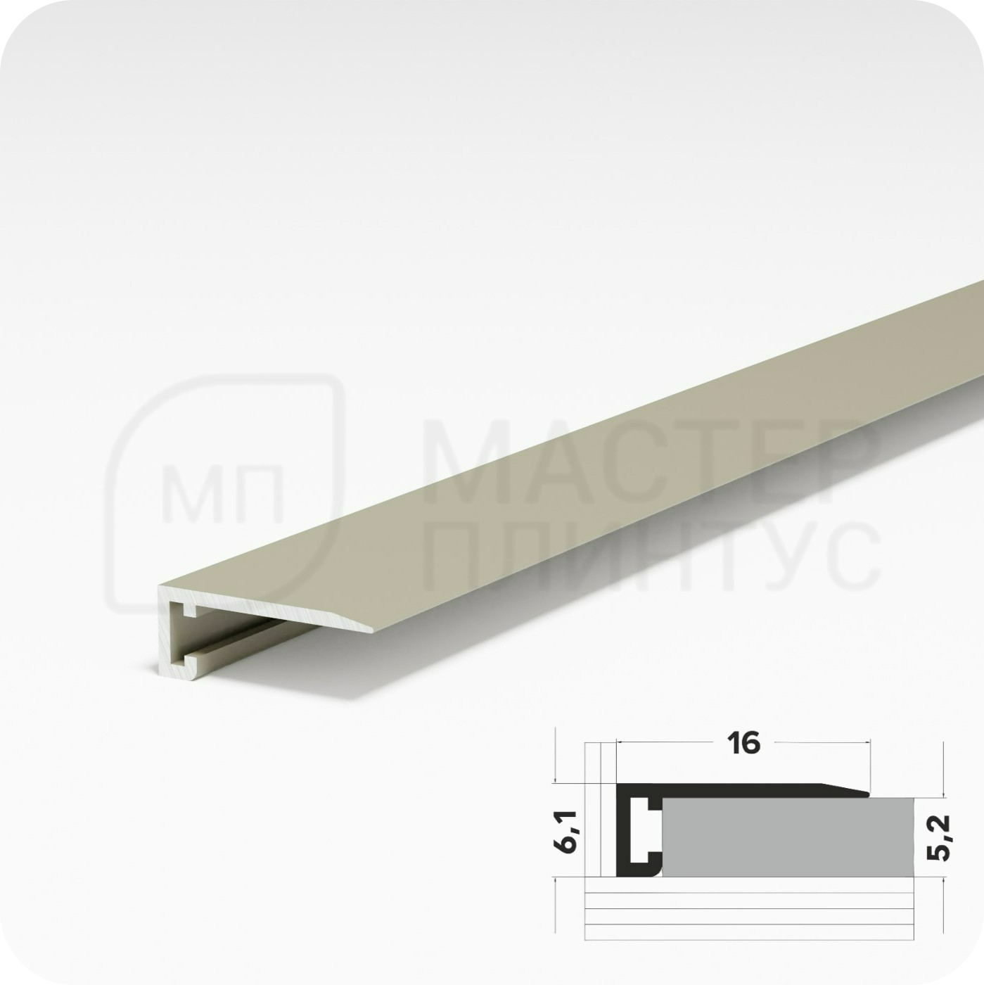 Прямой антиплинтус Лука в цвете шампань — современное решение для элегантной отделки помещений. Алюминиевый профиль с матовой поверхностью идеально подходит для любых напольных покрытий. Изделие сочетает в себе эстетику и функциональность, обеспечивая безупречный внешний вид помещения.