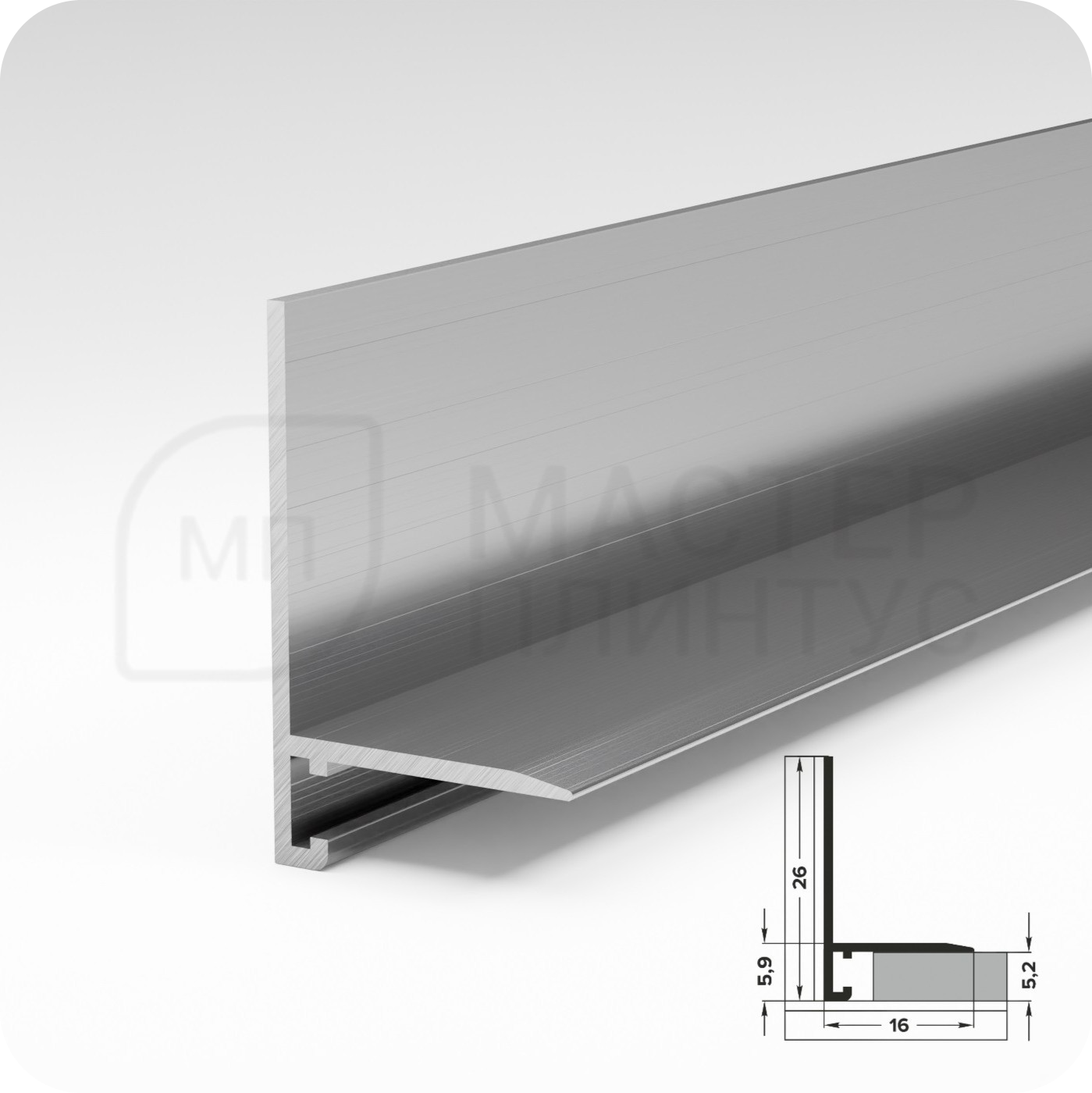БрендЛукаСтрана производстваРоссияВид профиляС заходом на стенуМатериалАлюминийЦветСереброВысота26 мм.Отступ от стены16 мм.Длина2700 мм.Способ монтажаНа монтажную клипсуВид покрытияБез покрытияЕдиница измеренияшт