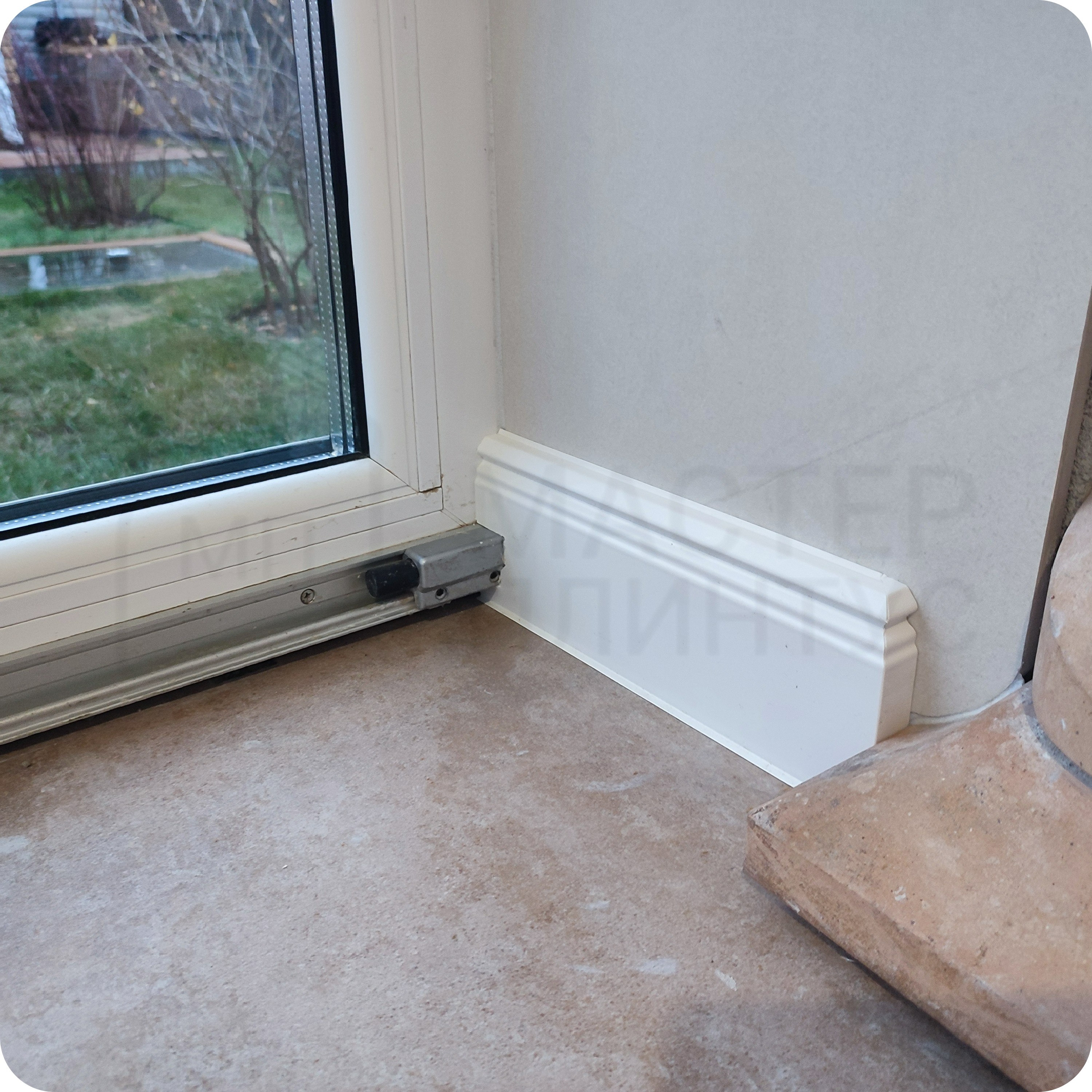 Он эффективно перекрывает зазор между стеной и напольным покрытием до 19 мм.