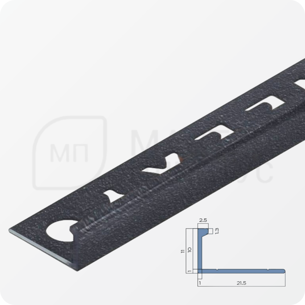 Окантовочный L - образный профиль для плитки NEEXY PV02-44 SA Муар антрацит — это стильное и практичное решение для отделки помещений. Профиль обеспечивает аккуратные и надёжные стыки между плитками толщний до 10 мм., придаёт завершённый вид отделке и помогает скрыть мелкие неровности поверхности.и.