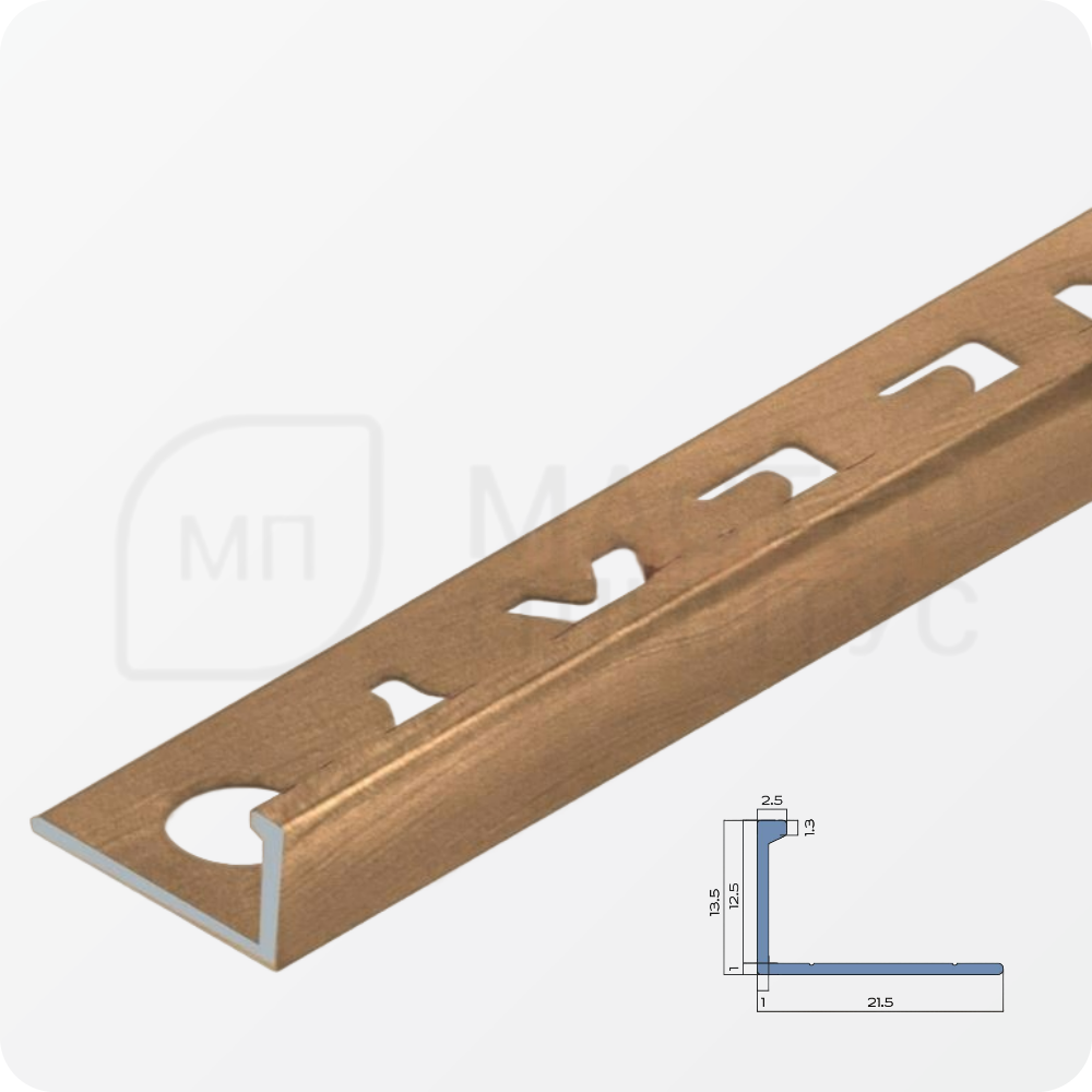 Окантовочный L - образный профиль для плитки NEEXY PV03-04 MG Золото матовое 2.7 м. — это стильное и практичное решение для отделки помещений. Профиль обеспечивает аккуратные и надёжные стыки между плитками толщний до 12 мм., придаёт завершённый вид отделке и помогает скрыть мелкие неровности поверхности.и.