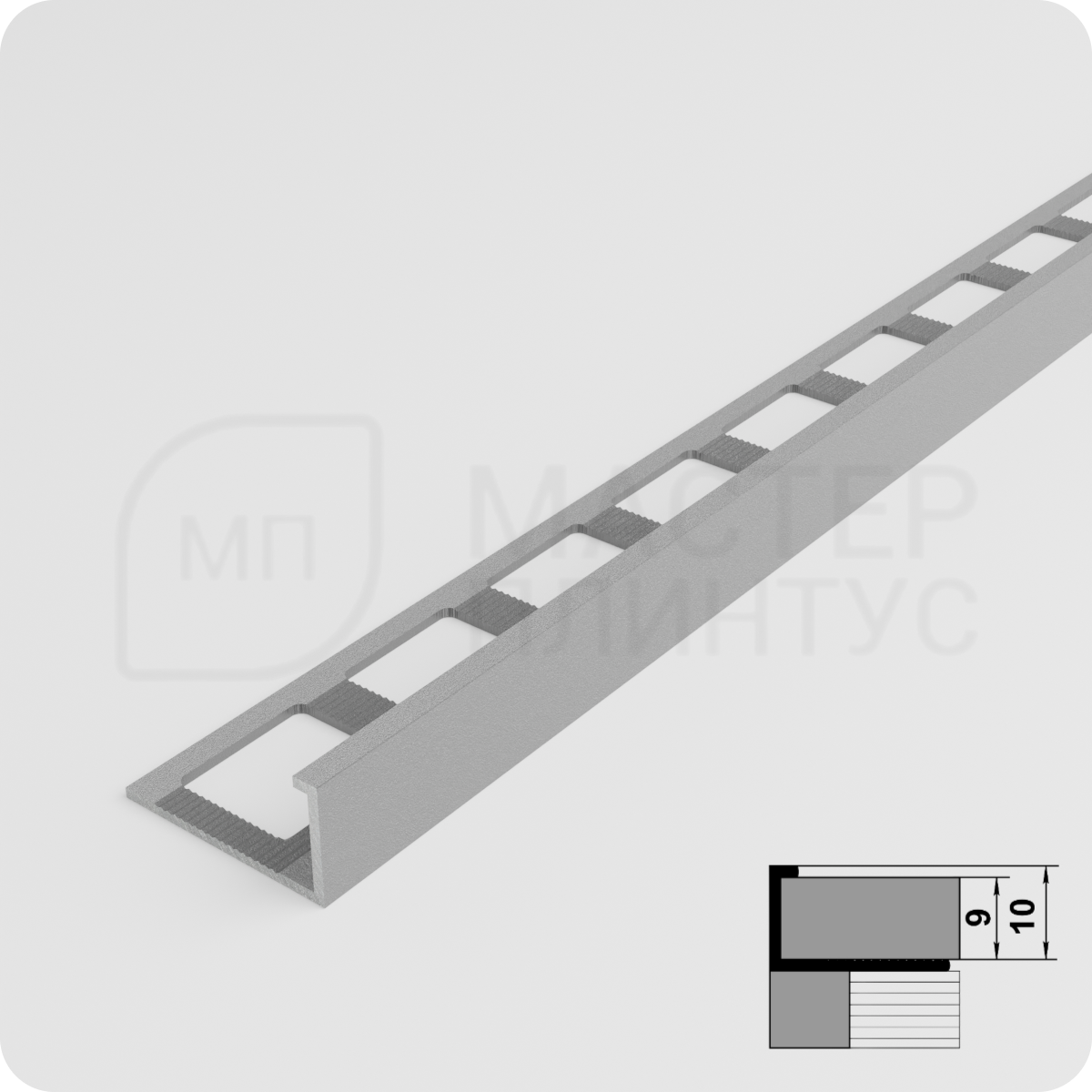 Наружный алюминиевый профиль - профессиональное решение для качественной укладки керамической плитки и керамогранита. Изделие отличается высокой прочностью и долговечностью, идеально подходит для внутренних и наружных работ.