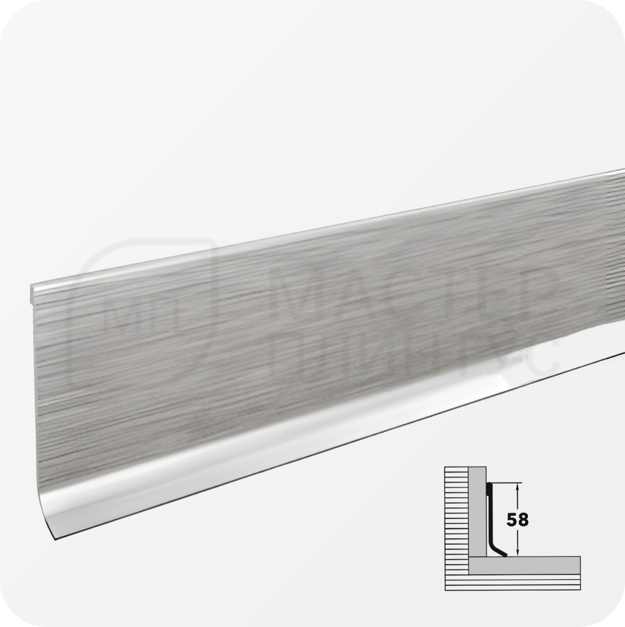 Плинтус Пл 60НС — L-образный сатинированный плинтус из нержавеющей стали. Произведён в России.