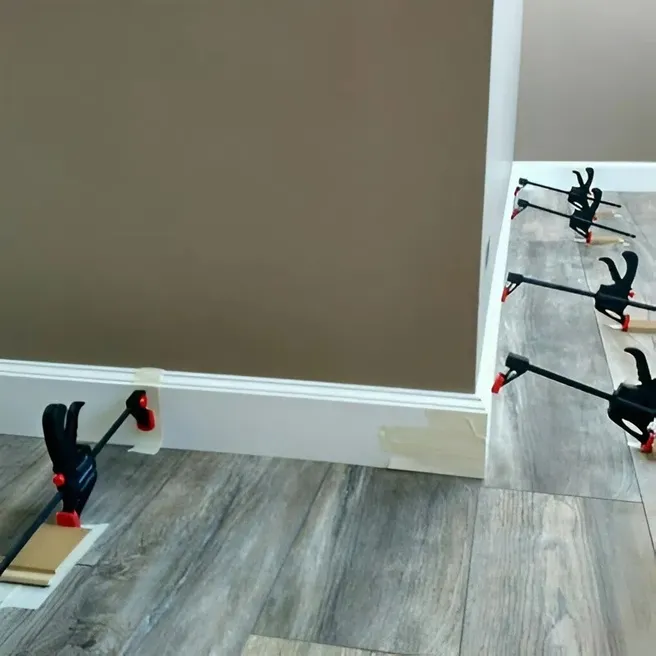 Деревянный плинтус из сосны с ламинированной пленкой дуб кромвель обладает стильным внешним видом и защитой от влаги и повреждений, что делает его практичным и долговечным элементом интерьера.