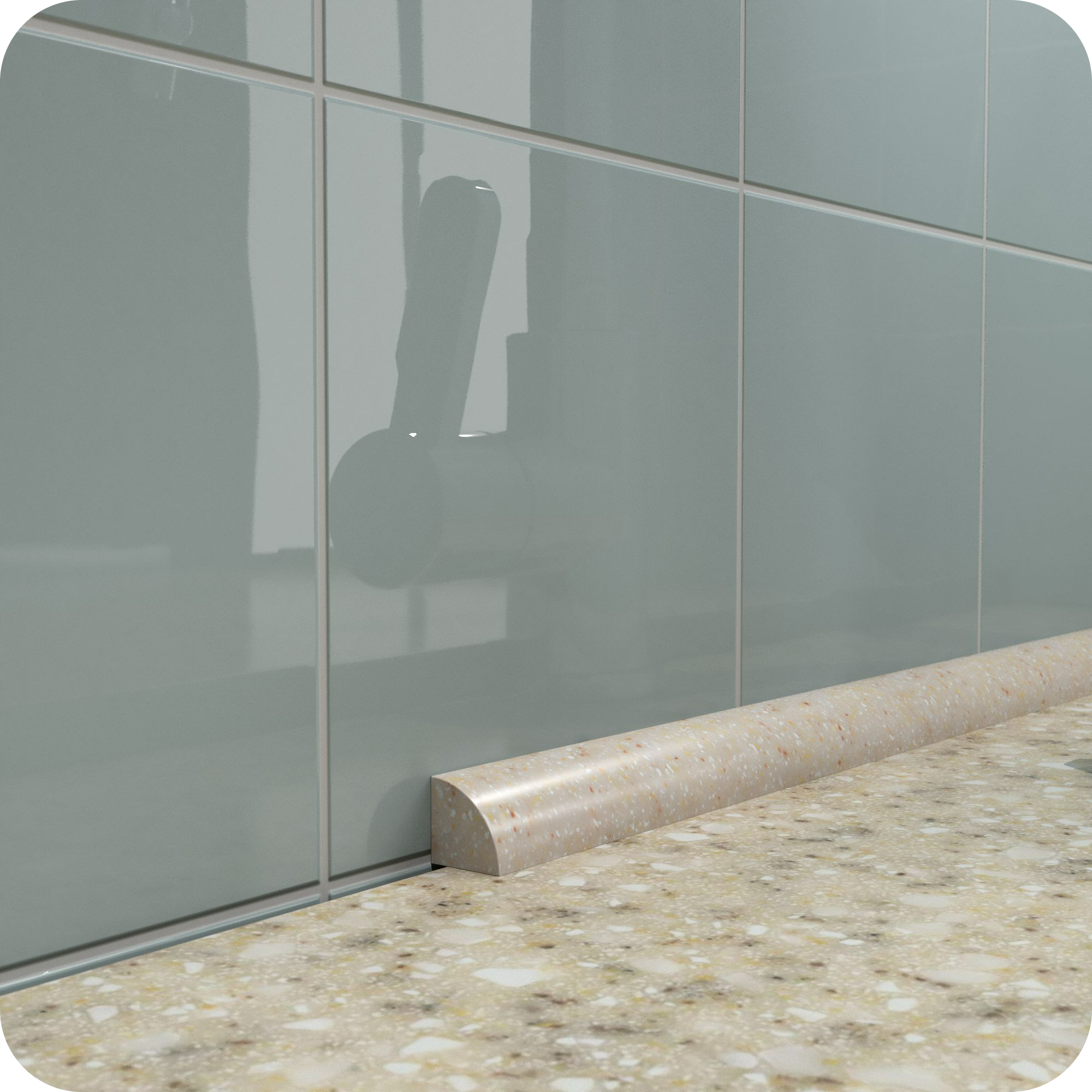 Плинтус для столешницы из акрилового камня ПШ12 бежевый, помогает скрыть стык между столешницей и стеной, а также защищает края столешницы от ударов, царапин и других повреждений..