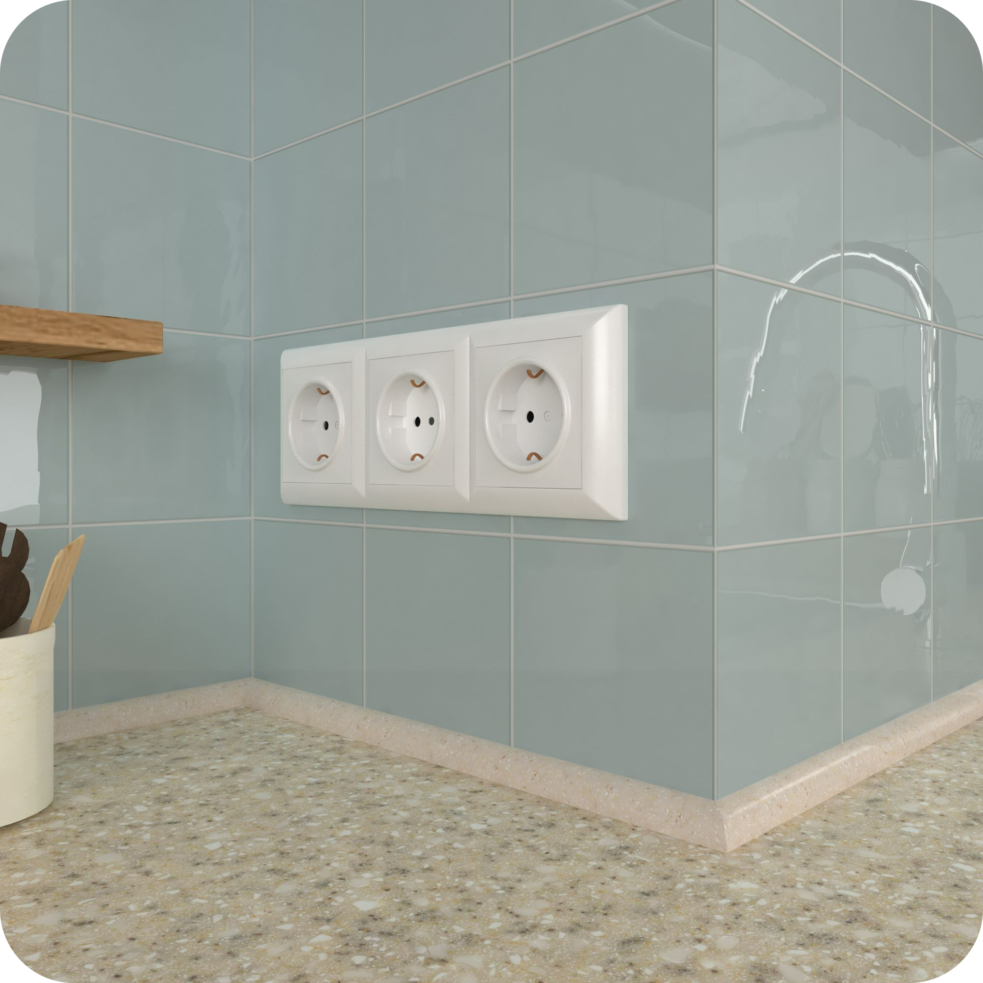 - Места примыкания плинтуса и столешницы, а также плинтуса и стеной дополнительно герметизируется.