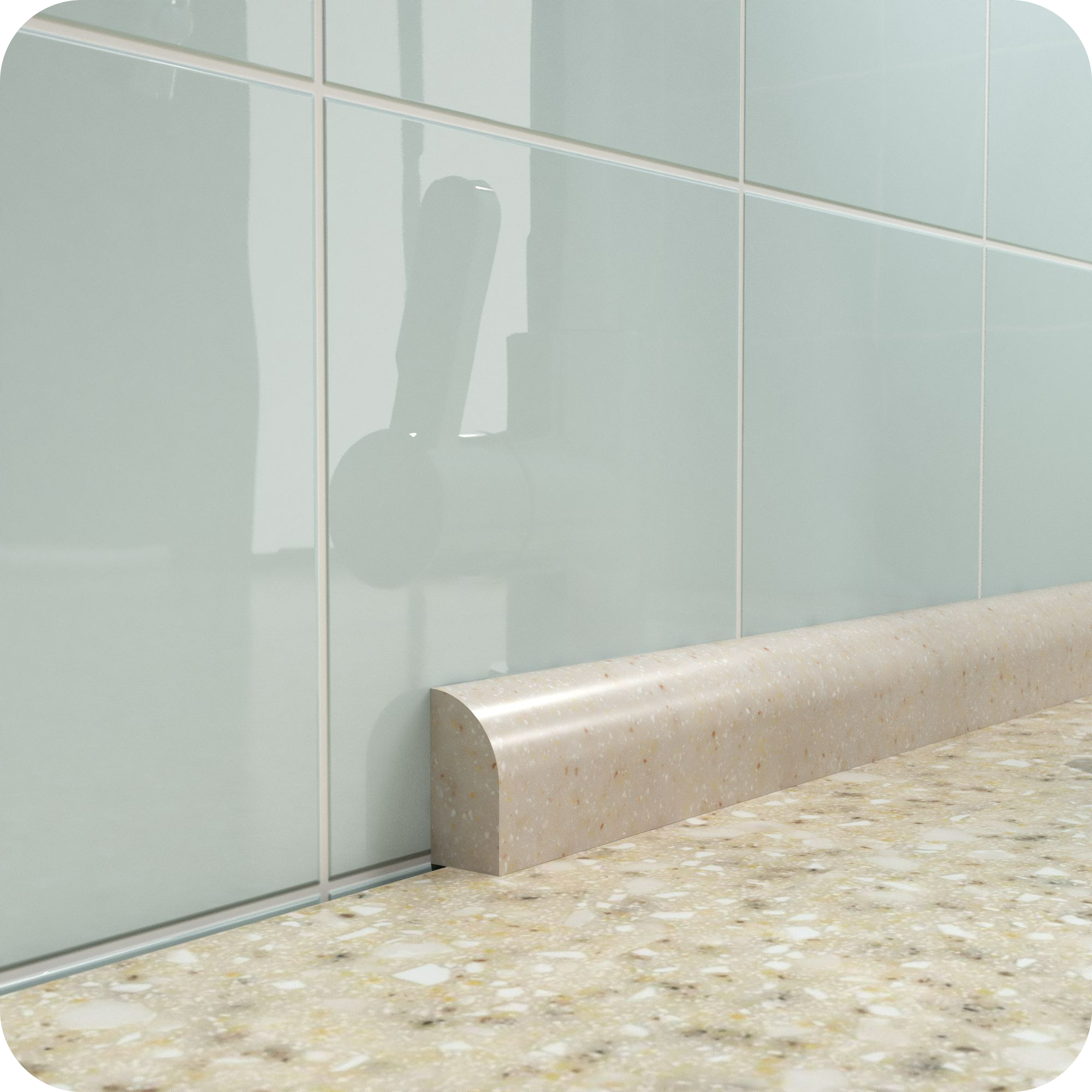 Плинтус для столешницы из акрилового камня ПШ24 бежевый, помогает скрыть стык между столешницей и стеной, а также защищает края столешницы от ударов, царапин и других повреждений..