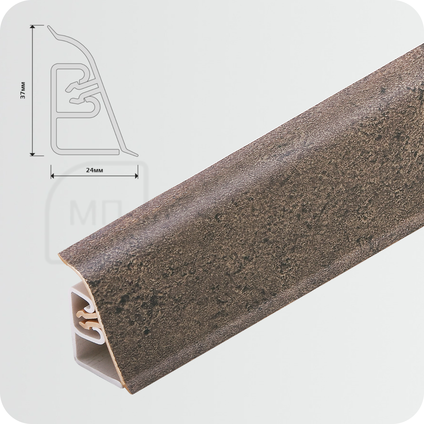 БрендCezarСтрана производительПольшаМатериалПВХЦветКоричневыйТекстураКаменьШирина24 мм.Высота37 мм.Длина3000 мм.Единица измеренияшт