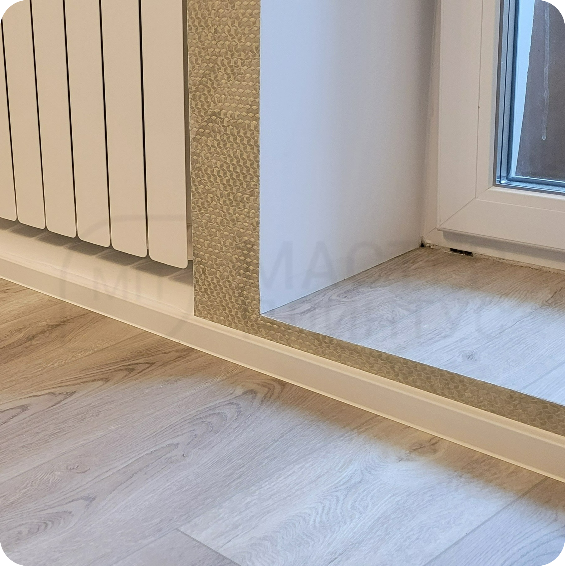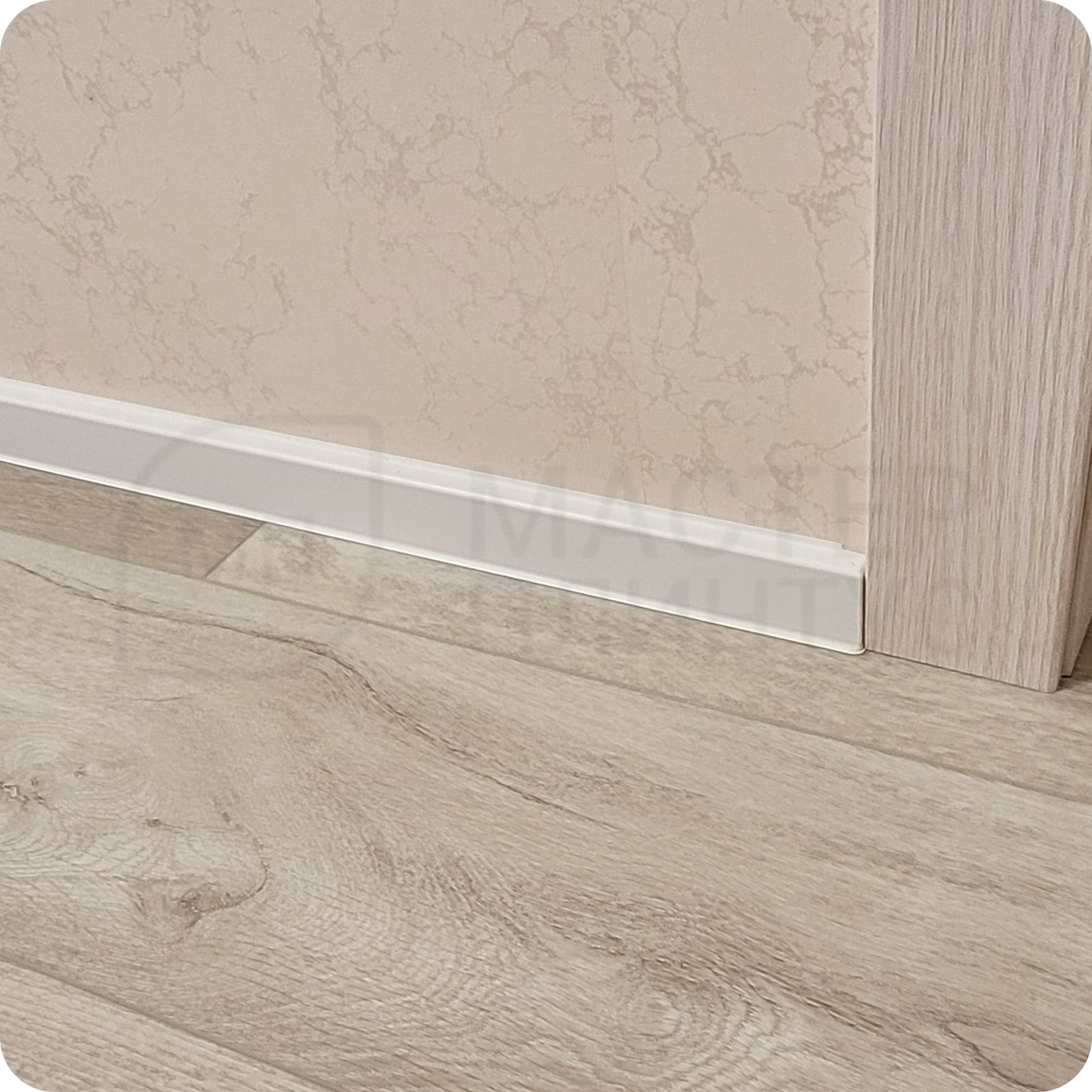 Он эффективно перекрывает зазор между стеной и напольным покрытием до 13 мм.