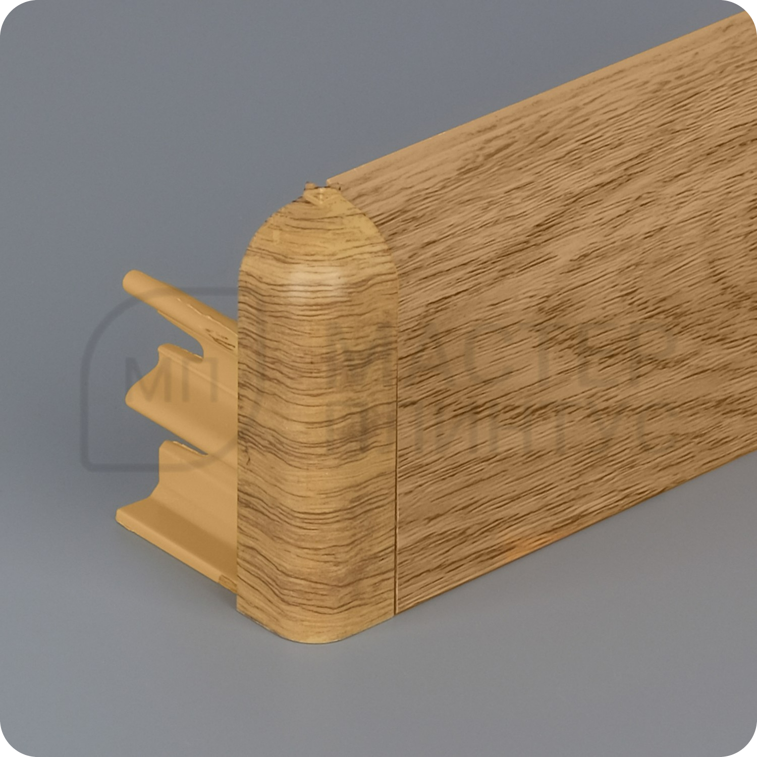 Плинтус из вспененного ПВХ Comfort Classic 80 — ударостойкий напольный плинтус с кабель-каналом и мягким краем что обеспечивает плотное прилигание к стене. Возможность монтажа как с фурнитурой так и под запил 45 градусов.
