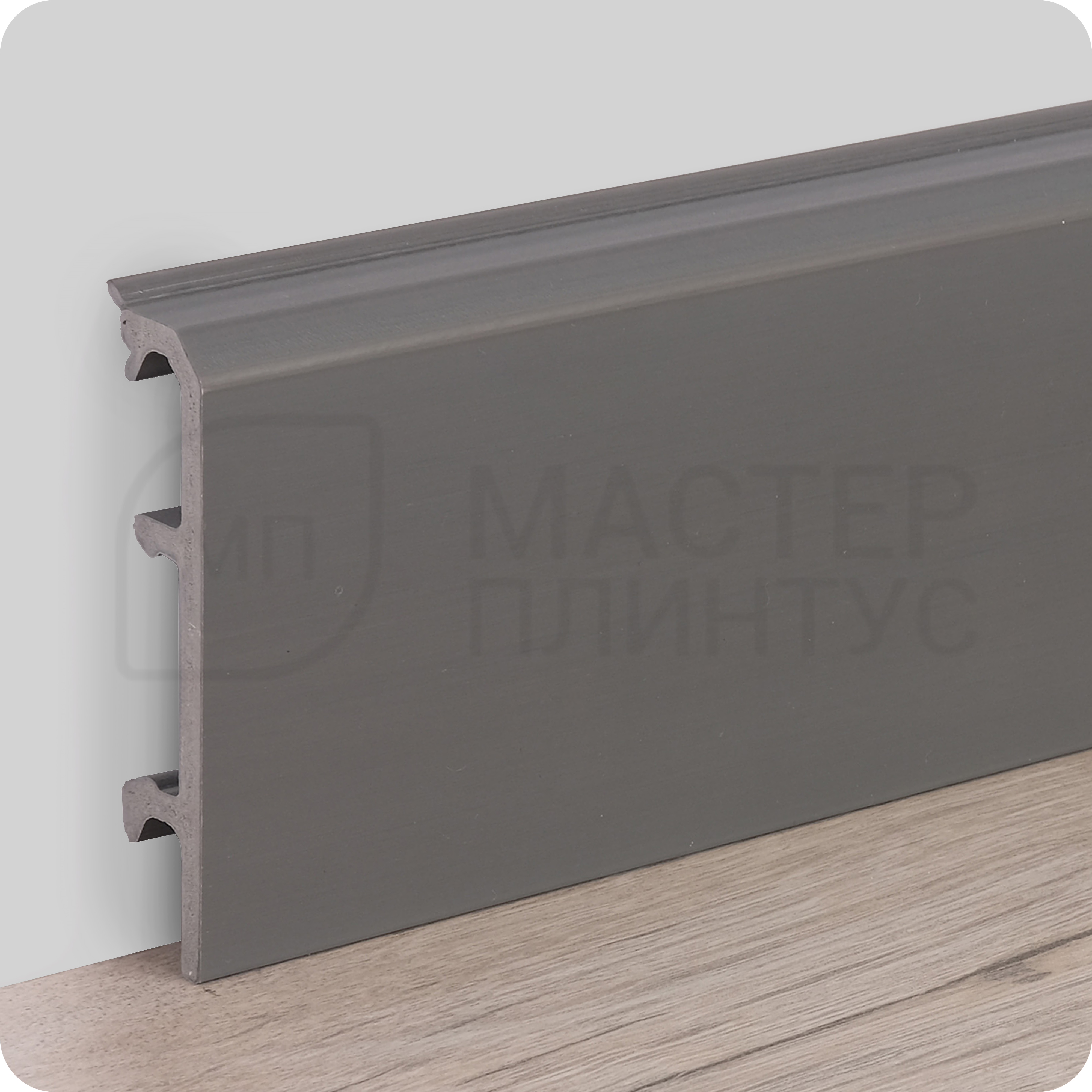Плинтус из вспененного ПВХ Comfort Modern 80 Антрацит — ударостойкий напольный плинтус с кабель-каналом и мягким краем что обеспечивает плотное прилигание к стене. Возможность окрашивания в любой цвет.