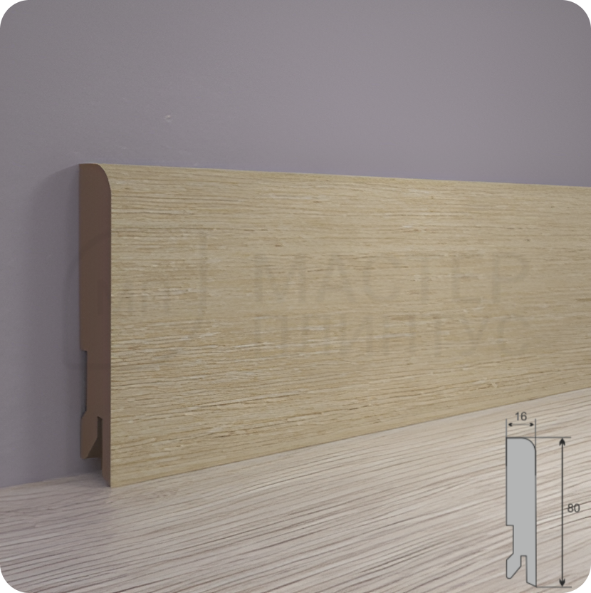 МДФ плинтус от компании "Лука" Пл 80МДФ.2700.24047 Point line дуб кентерберри, перекроет зазор между стеной и напольным покрытием до 16 мм.