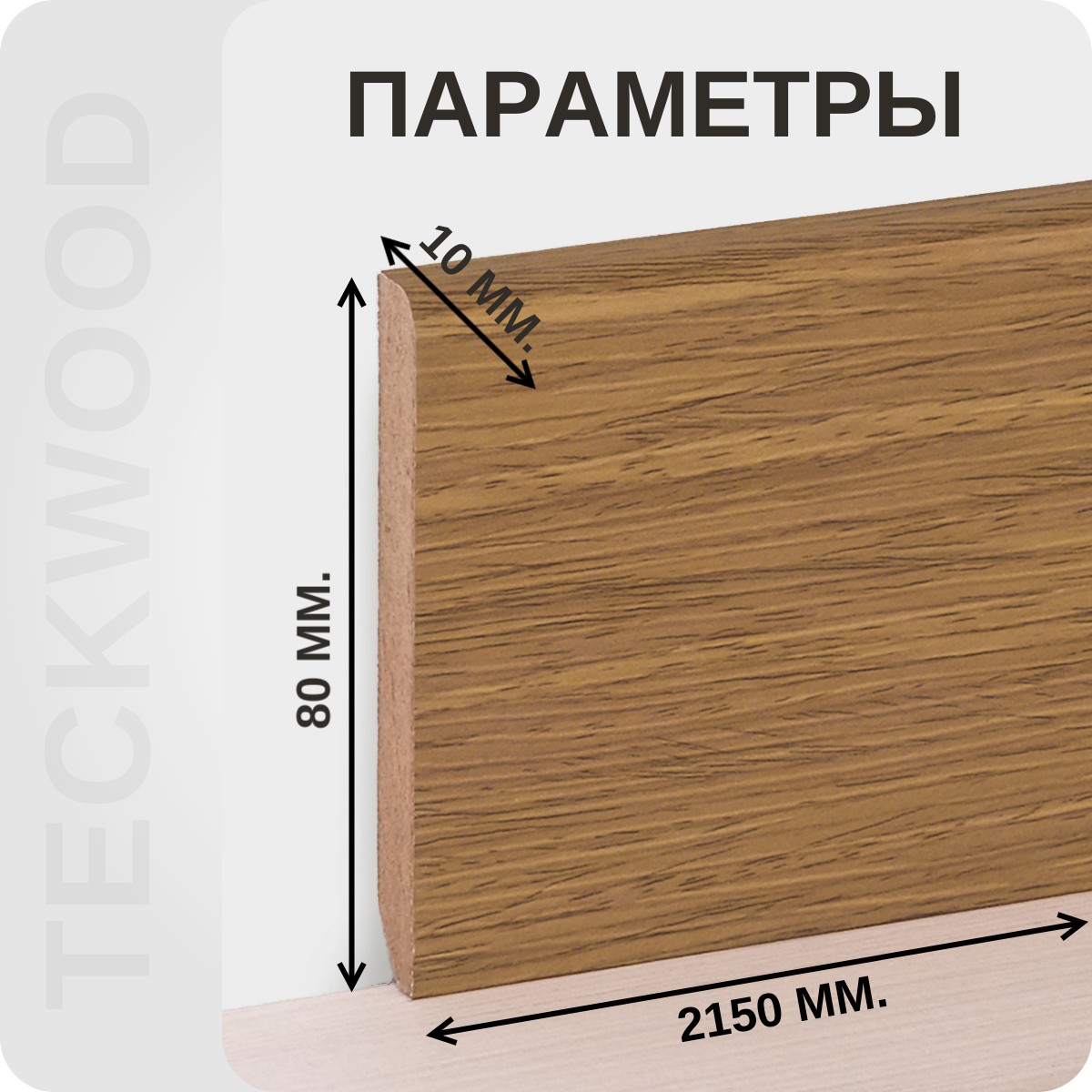 БрендTeckWoodСтрана производительРоссияМатериалМДФЦветРыжийВысота80 мм.Длина2150Толщина10 мм.Способ монтажаКлейОсобенностиБез кабель-каналаЕдиница измеренияшт