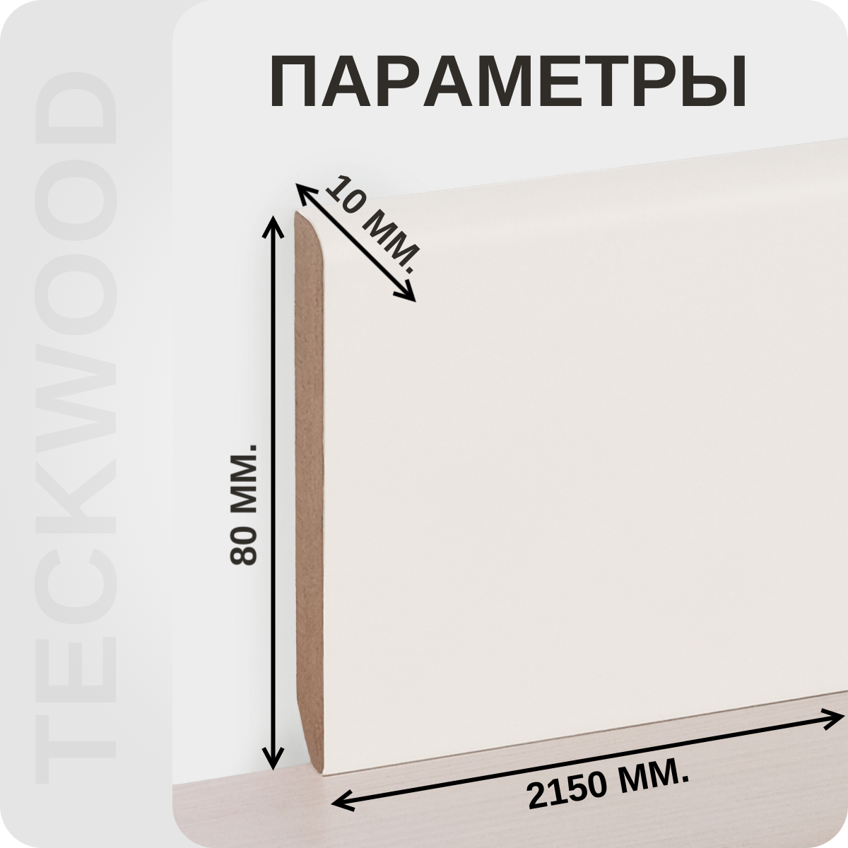 Плинтус МДФ TeckWood в цвете RAL 9010, представляет собой высококачественное решение для оформления интерьера, идеальная совместимость с дверным наличником благодаря оптимальной толщине 10 мм.