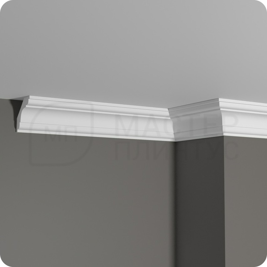 Потолочный плинтус из дюрополимера Decor-Dizayn DD05 под покраску — легкий и прочный элемент декора, который легко монтируется и позволяет создать аккуратный переход между потолком и стенами.