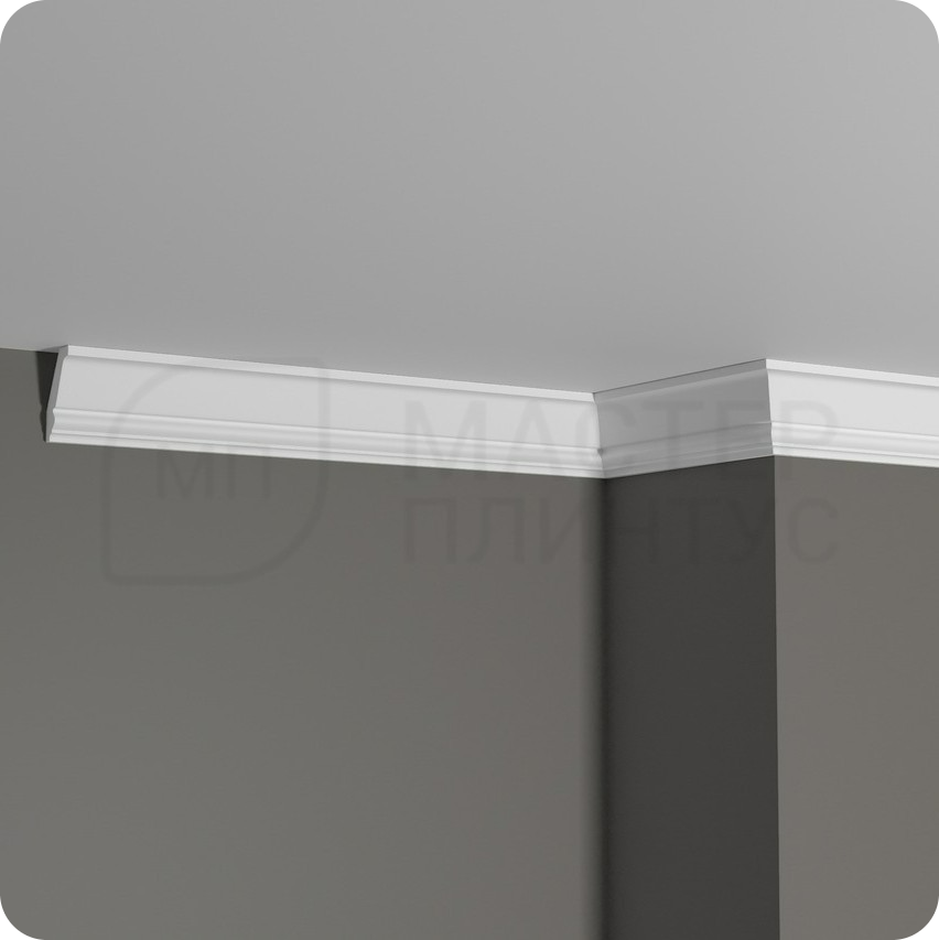 Потолочный плинтус из дюрополимера Decor-Dizayn DD24 под покраску — легкий и прочный элемент декора, который легко монтируется и позволяет создать аккуратный переход между потолком и стенами.