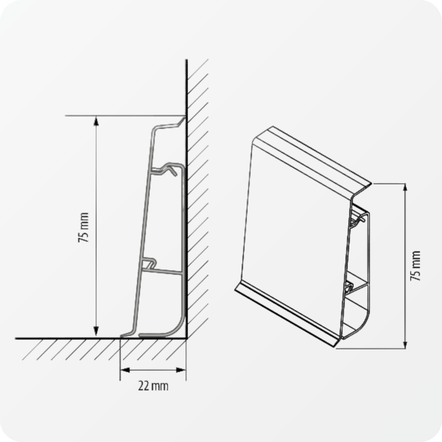Высота: 75 мм. Толщина: 22 мм. Длина: 2500 мм. |