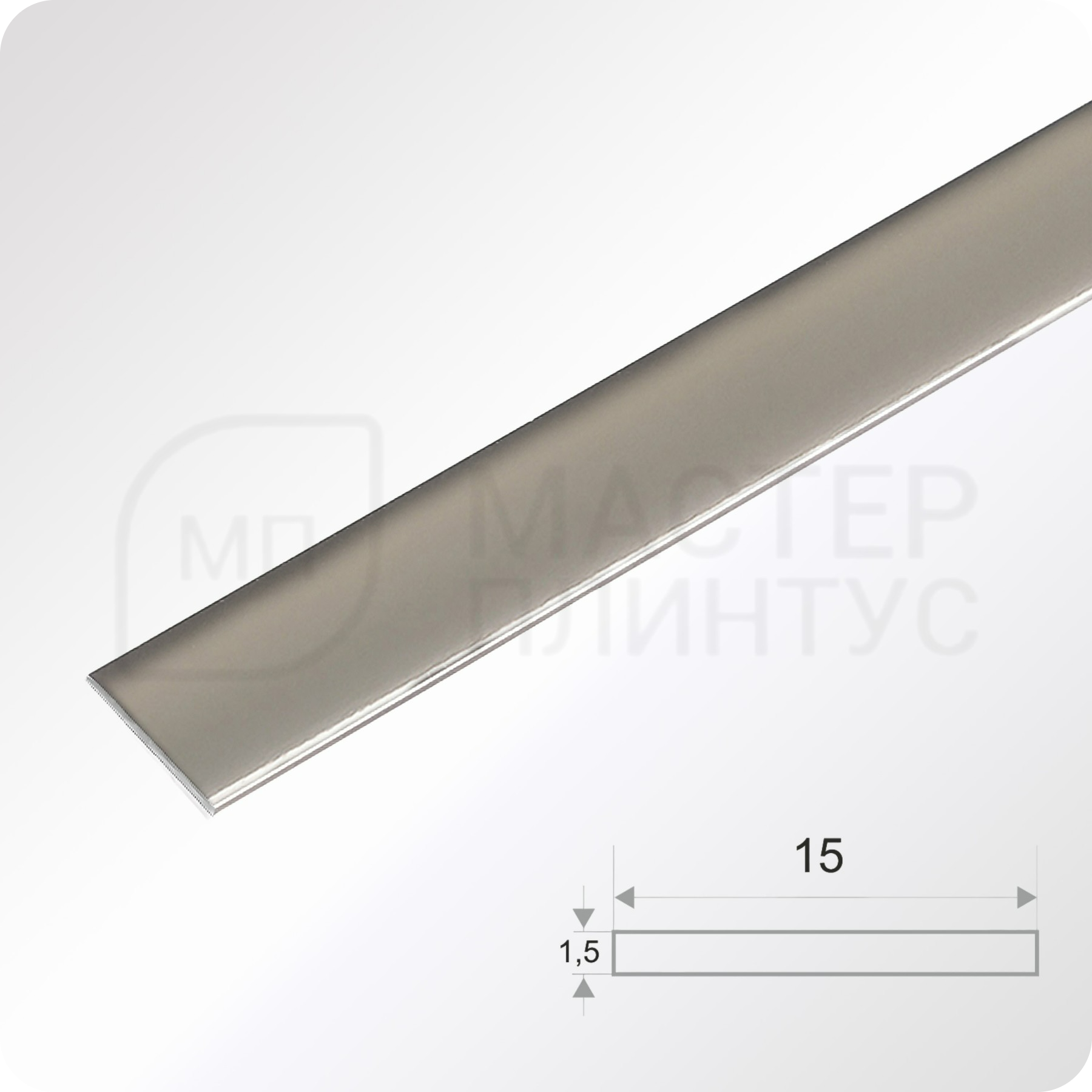 Полоса алюминиевая 15х1.5х2700 мм. Бронза светлая глянец
