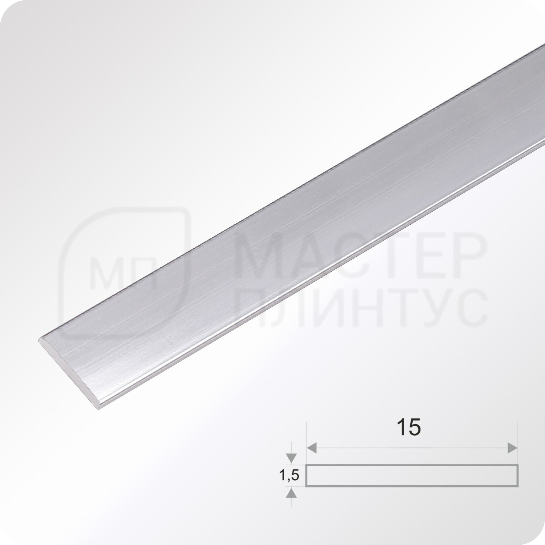 Полоса алюминиевая 15х1.5х2700 мм. Серебро глянец