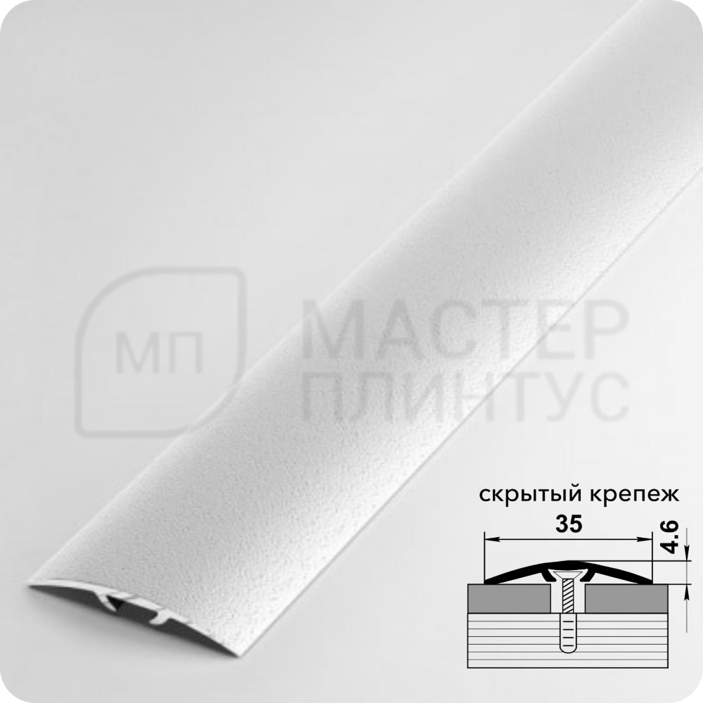 Одноуровневый порог со скрытым крепежом белый, от бренда «Лука» предназначен для создания плавного перехода между двумя напольными покрытиями, которые находятся на одном уровне.