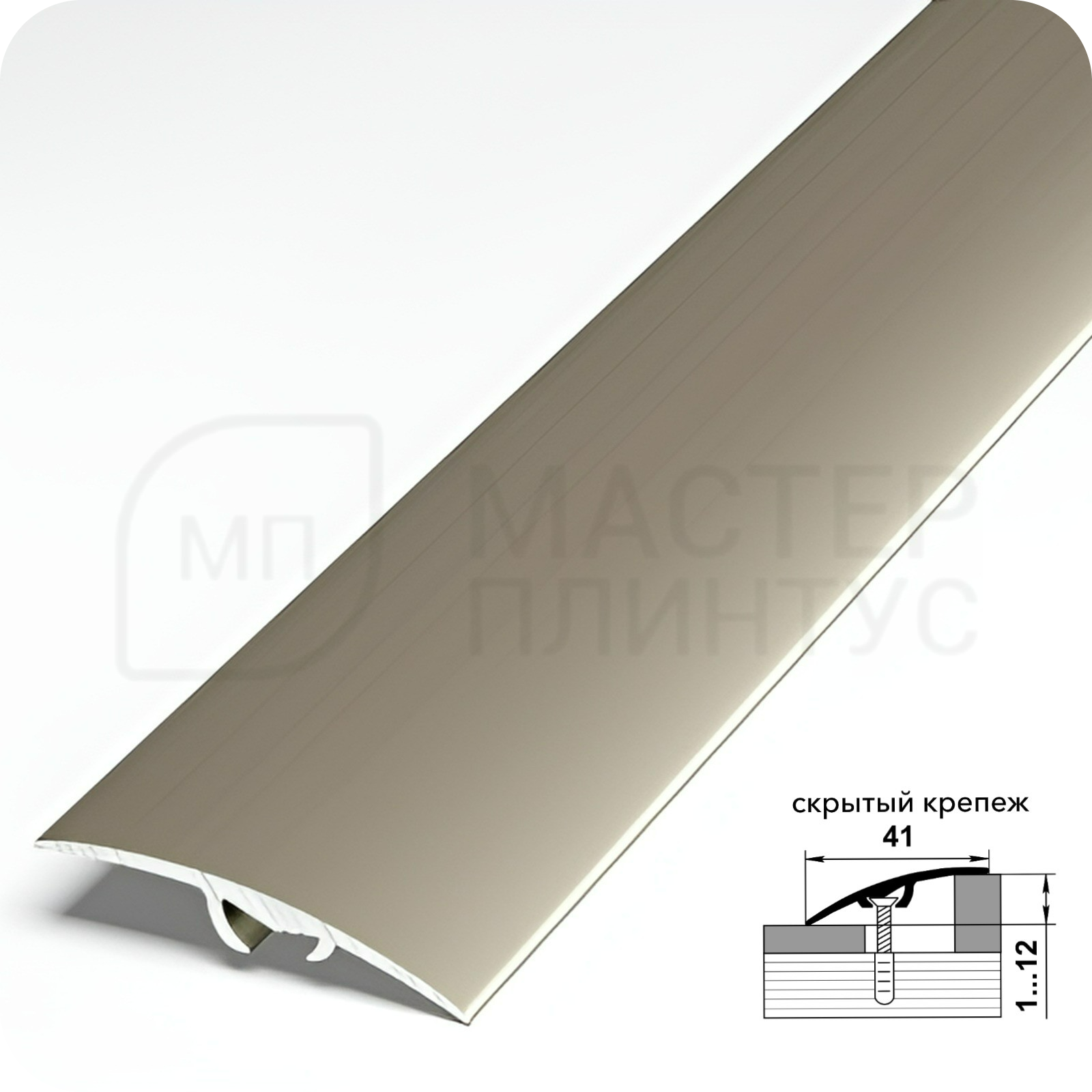БрендЛукаСтрана производительРоссияФорма профиляРазноуровневыйЦветШампаньТип покрытияАнодированиеШирина41 мм.Длина2700 мм.Высота перепадаОт 1 до 12 мм.Единица измеренияшт