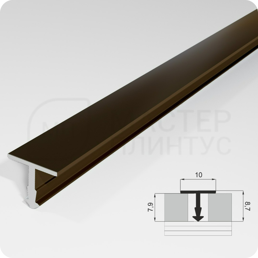 - Алюминиевый Т образный порог — это прочный и легкий элемент, предназначенный для плавного перехода между различными напольными покрытиями. Он выполнен из алюминия, что обеспечивает отличную устойчивость к коррозии и механическим повреждениям.