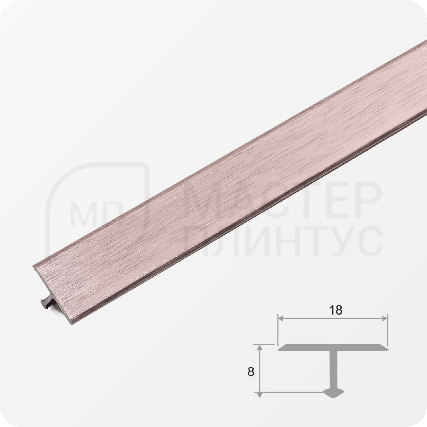 Т-образный алюминиевый профиль ПТ 18 розовый глянец браш, предназначен для стыковки двух одноуровневых напольных покрытий.
