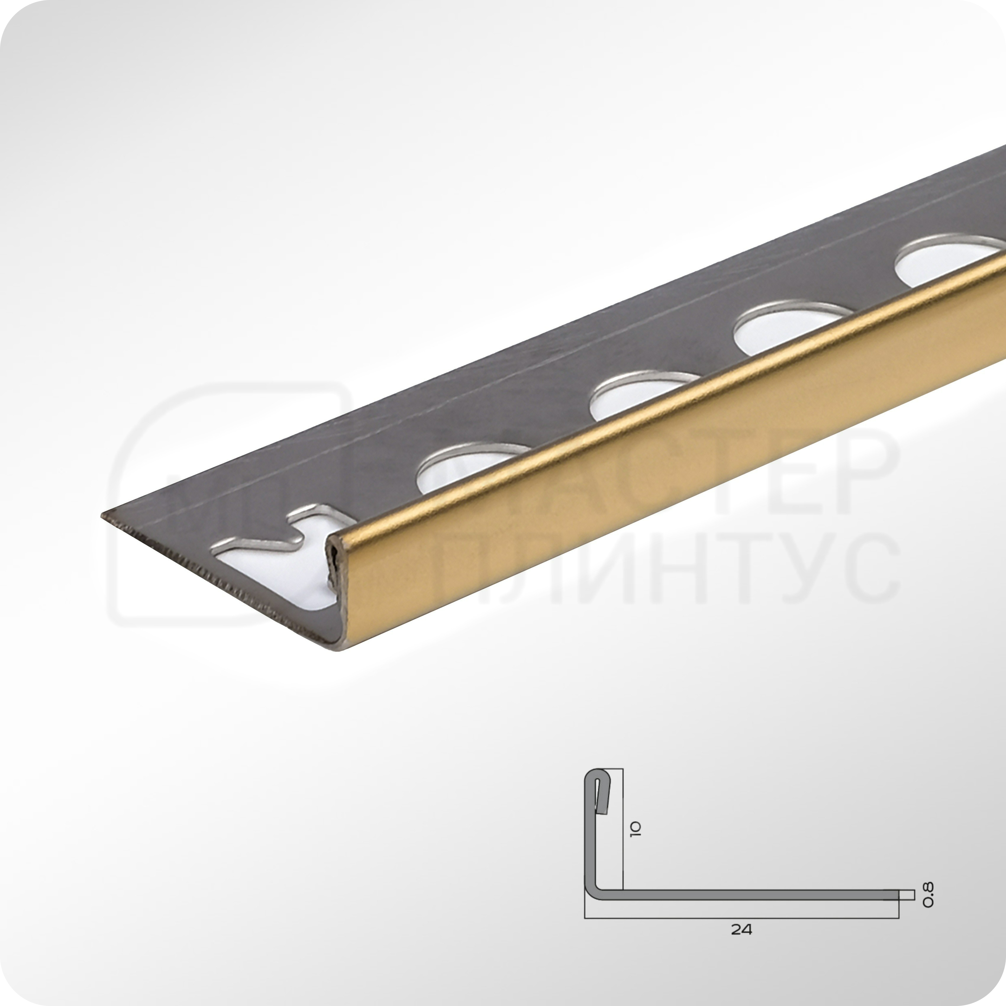 Надежное решение для защиты и декоративного оформления керамической плитки. Изготовлен из высококачественной нержавеющей стали с полированной поверхностью.