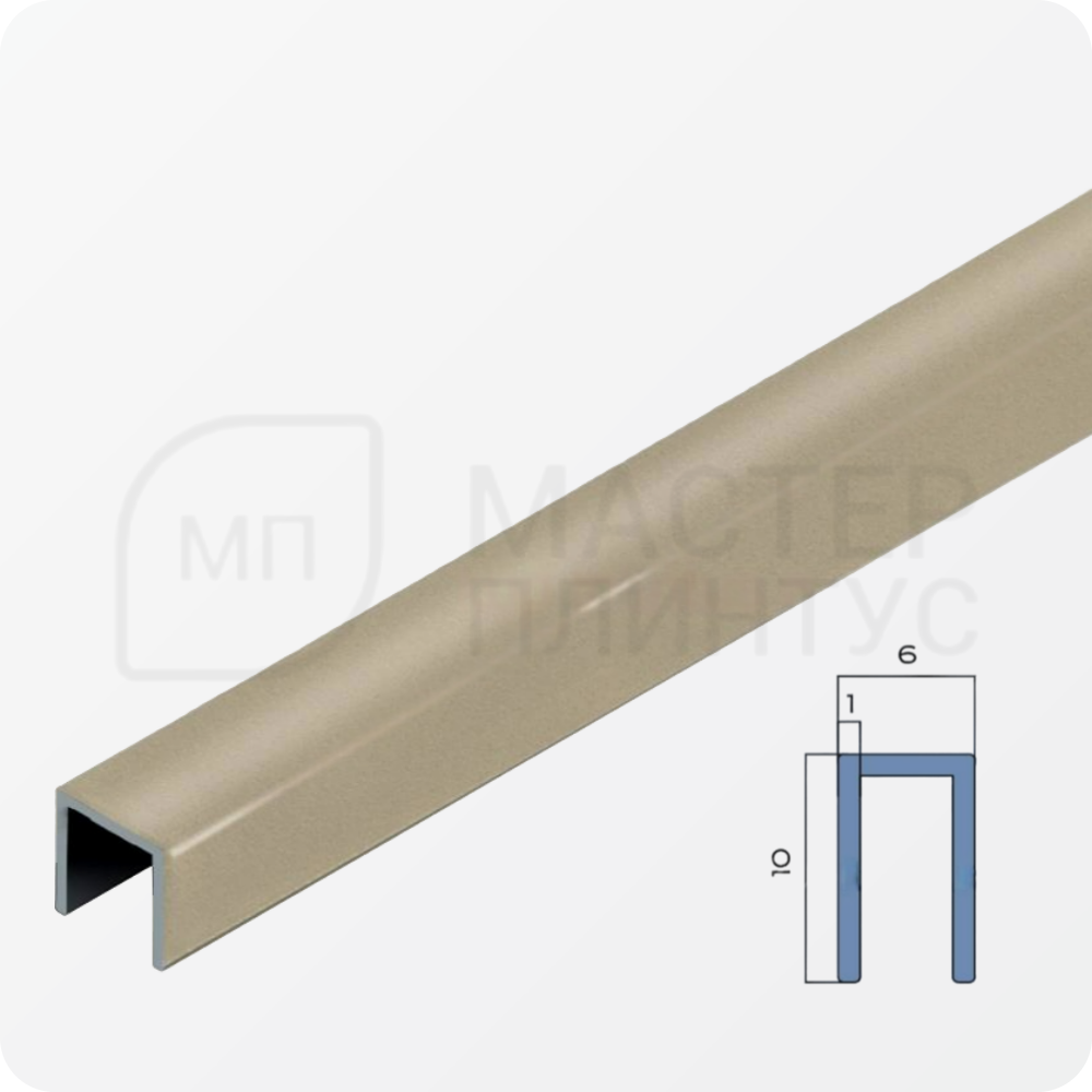 П-образный алюминиевый профиль 6х10 мм. NEEXY PV85-09 BCP Шампань блестящая 2.7 м.