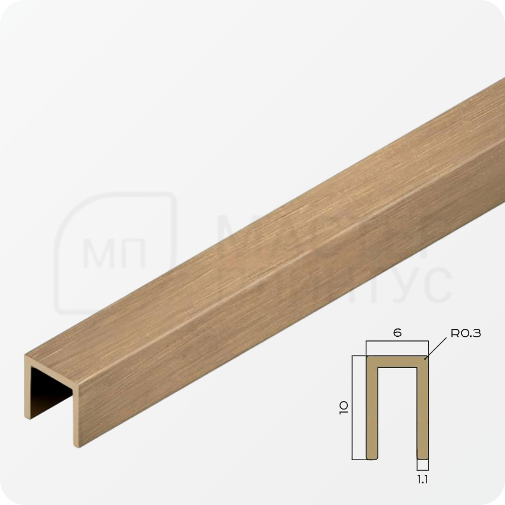 Профиль П-образный латунный 6х10 мм. NEEXY PVL85-03 BAO Брашированный 2.7м.
