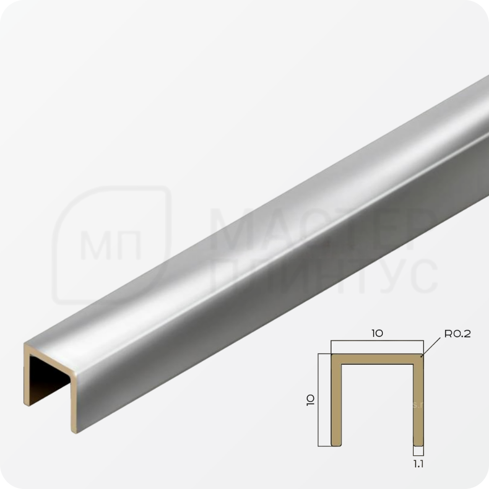 П-образный латунный профиль 10х10 мм. NEEXY PVL83-02 CHR Хромированный — это функциональный и эстетичный элемент отделки, предназначенный для создания четких границ между различными материалами.