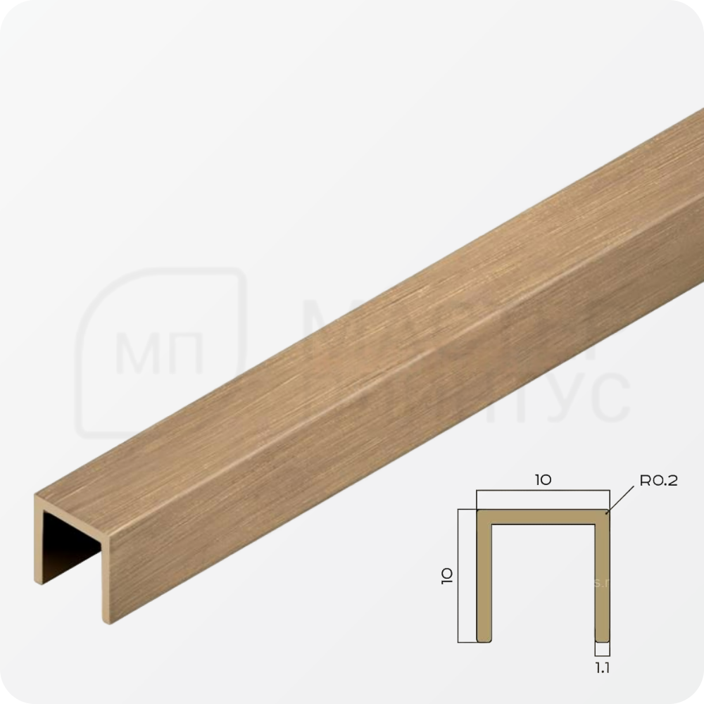 П-образный латунный профиль 10х10 мм. NEEXY PVL83-03 BAO Брашированный — это функциональный и эстетичный элемент отделки, предназначенный для создания четких границ между различными материалами.