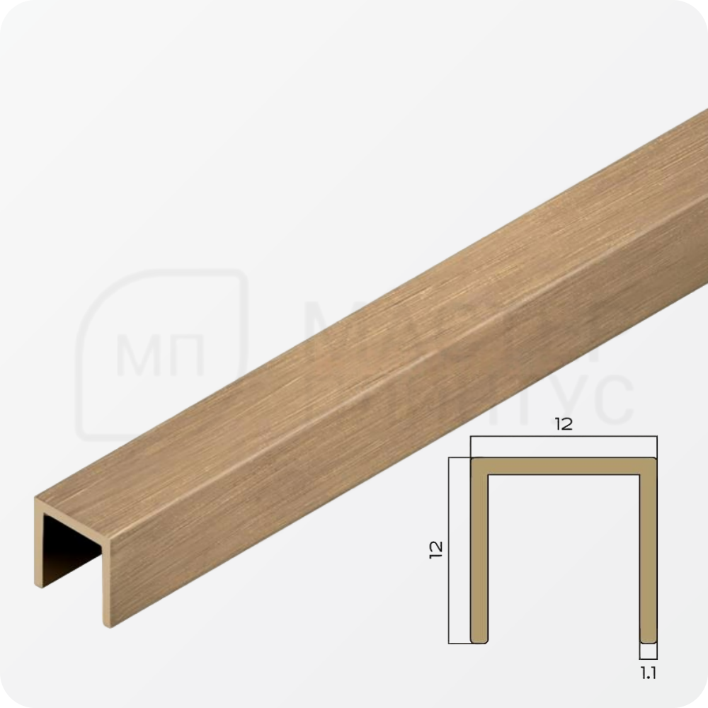 П-образный латунный профиль 12х12 мм. NEEXY PVL86-03 BAO Брашированный — это функциональный и эстетичный элемент отделки, предназначенный для создания четких границ между различными материалами.