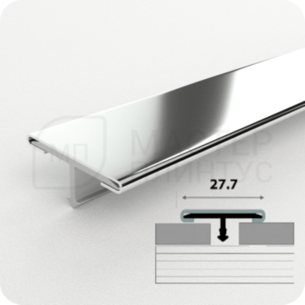 Т-образный профиль ПС 11 Серебро полированное — это порожек из нержавеющей стали марки AISI 304, который используется для соединения разных типов напольных покрытий, находящихся на одном уровне.
