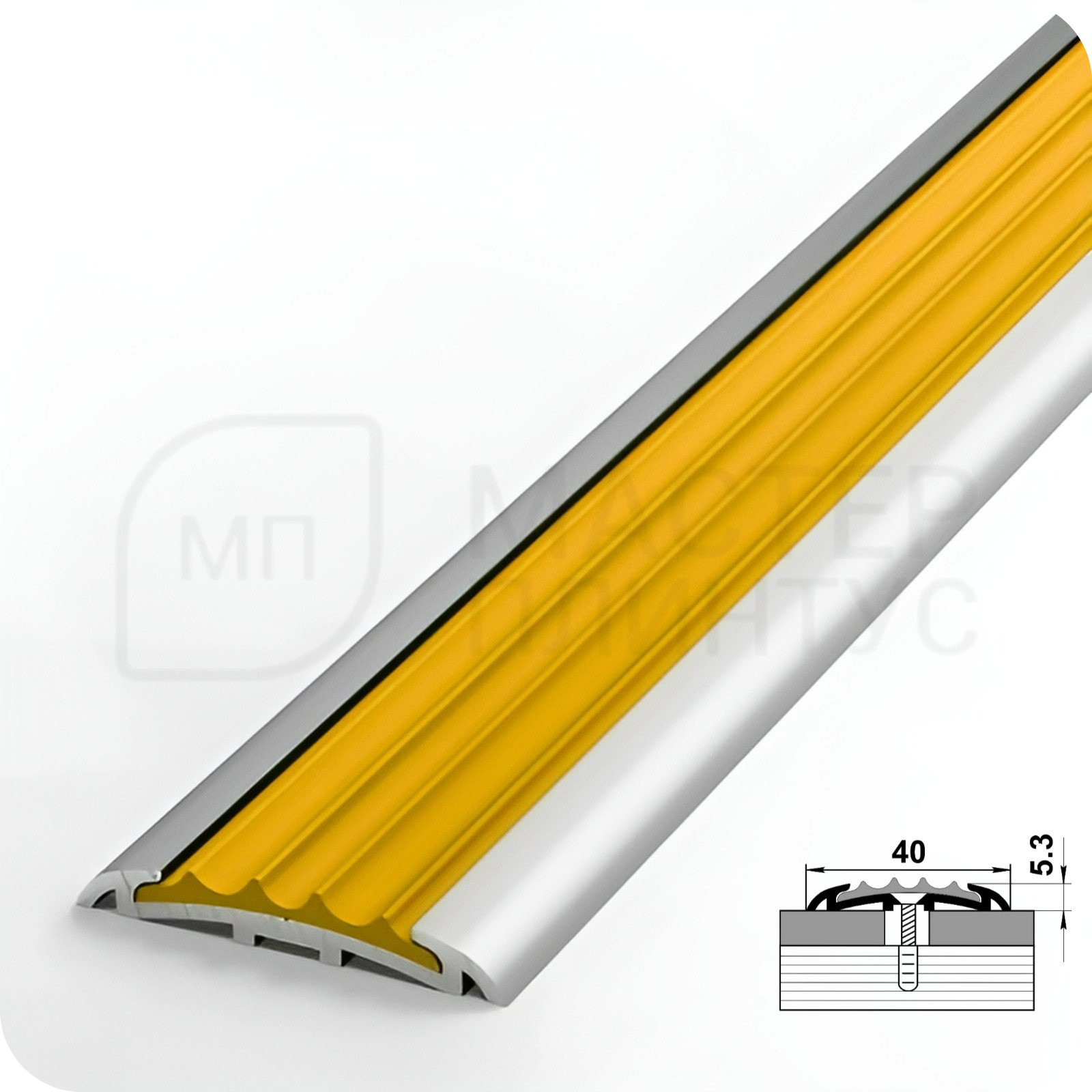 Порог противоскользящий Лука ПС 08-1.2700.01л Серебро матовое с желтой ПВХ вставкой