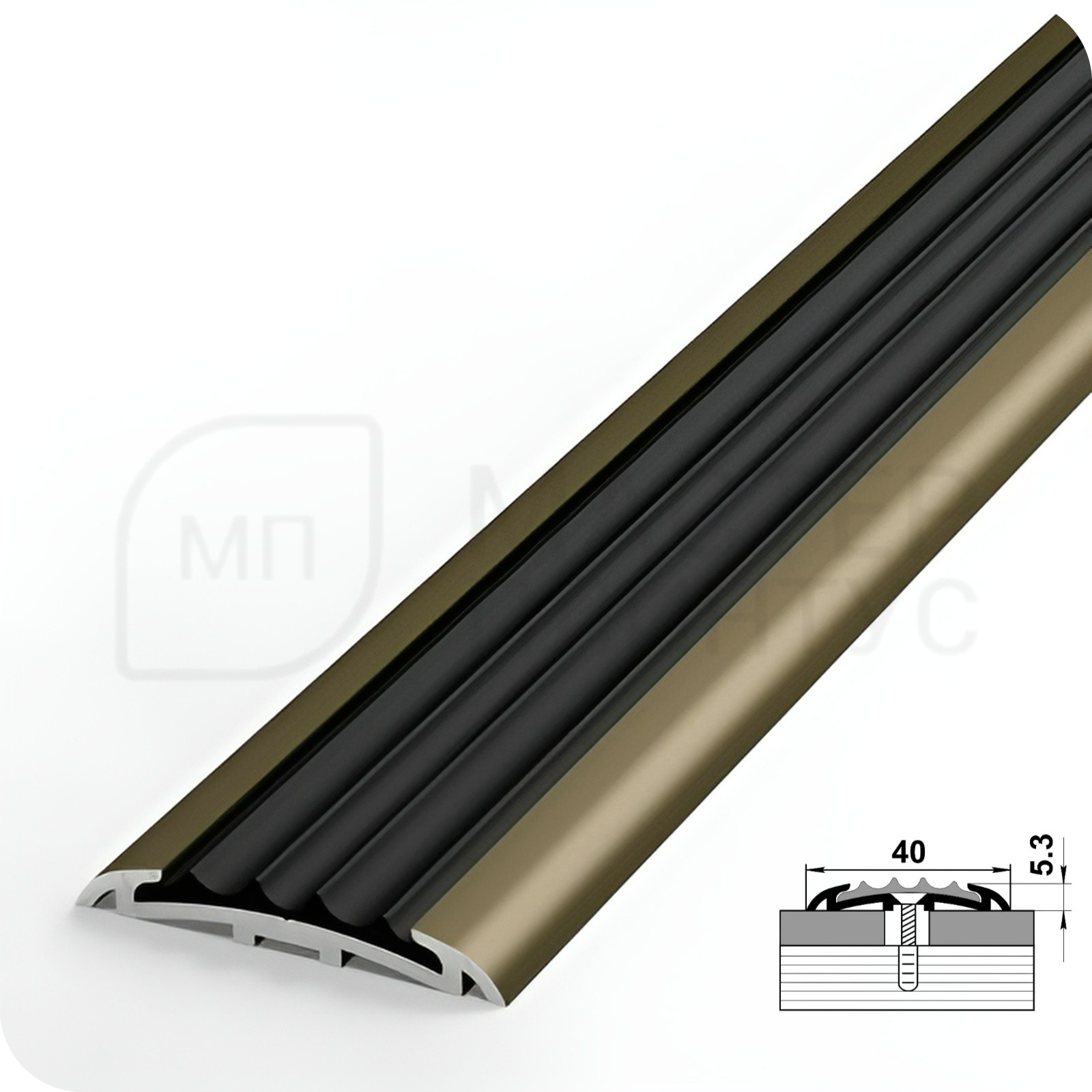 Порог противоскользящий Лука ПС 08-1.2700.04л Бронза с черной ПВХ вставкой